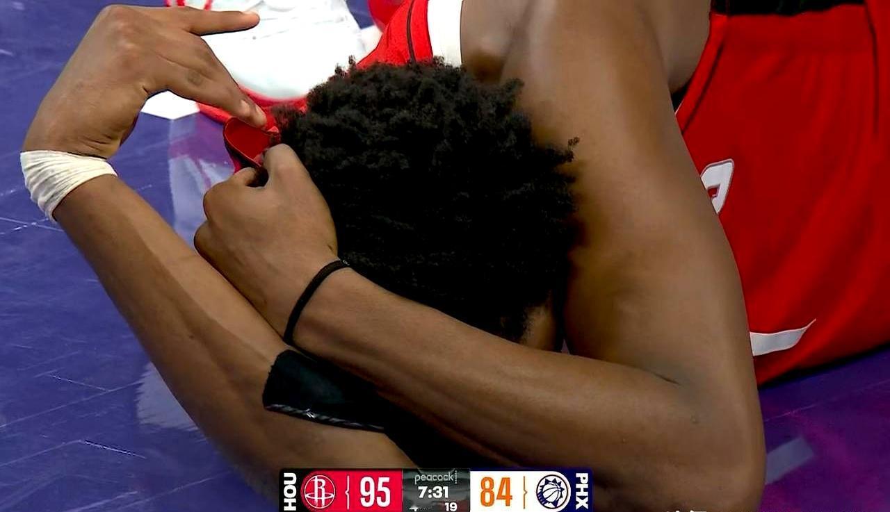 在今天火箭客场挑战太阳的比赛中,发生了特别让人揪心的一幕。 第四节七分多钟,阿门-汤普森防守太阳快攻时,先被理查兹打到面部,倒地又磕到脑袋,躺地上捂头痛苦,险些离场。 球员安全永远是第一位的!阿门这伤看着都疼,希望他没啥大事,赶紧恢复。火箭现在正靠年轻球员冲劲,可别伤了关键轮换,也盼着比赛里少点这种揪心意外,球员都能健健康康打球。