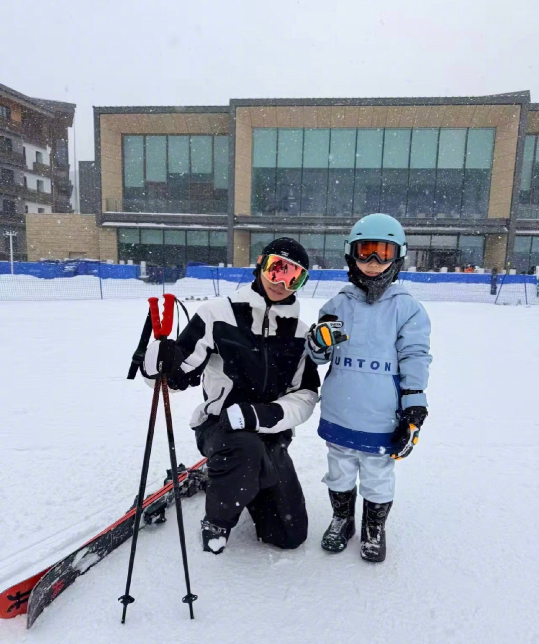 偶遇谢霆锋滑雪合影路人滑雪场偶遇谢霆锋啦,羡慕两个字说我累了