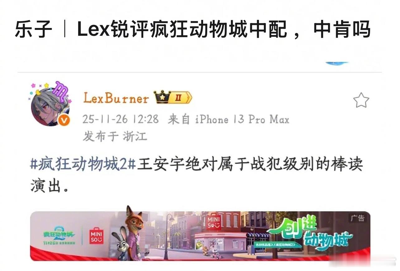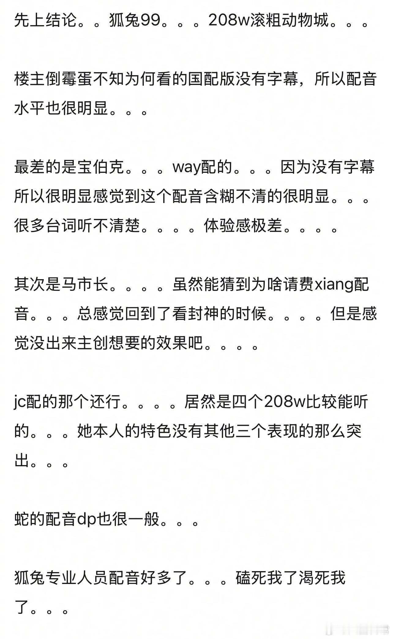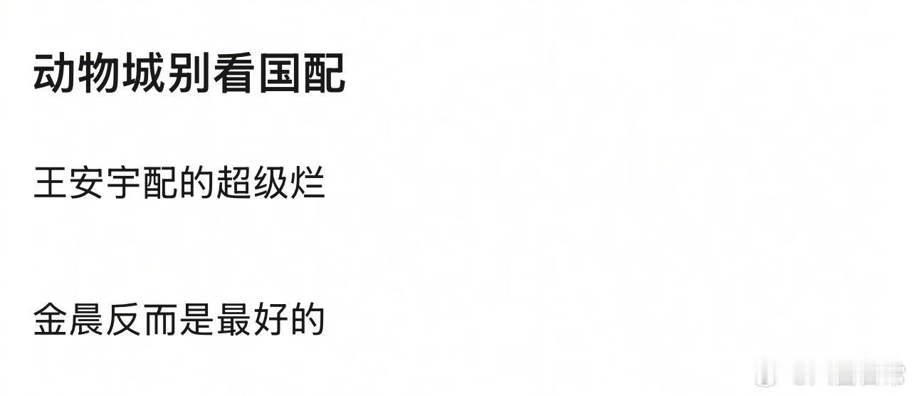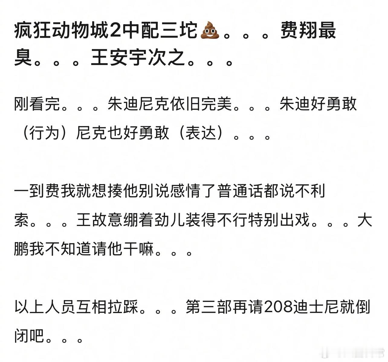 看了一圈《疯狂动物城2》中配repo,金晨配的不错,王安宇和费翔很差,看过的来说说是这样吗?王安宇配音疯狂动物城2首批观众反馈