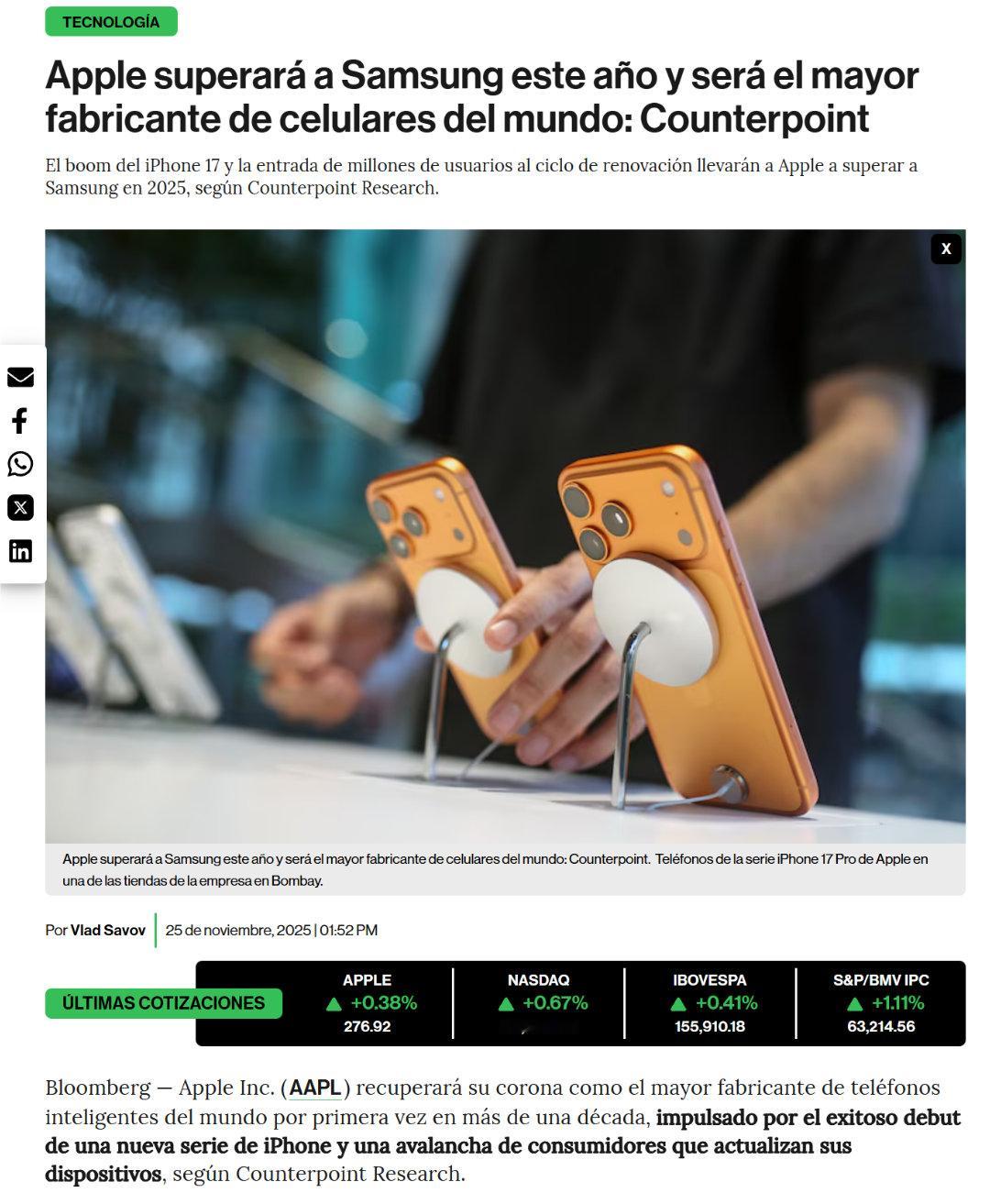 【苹果全年出货量有望超越三星】iPhone不一直是第一吗