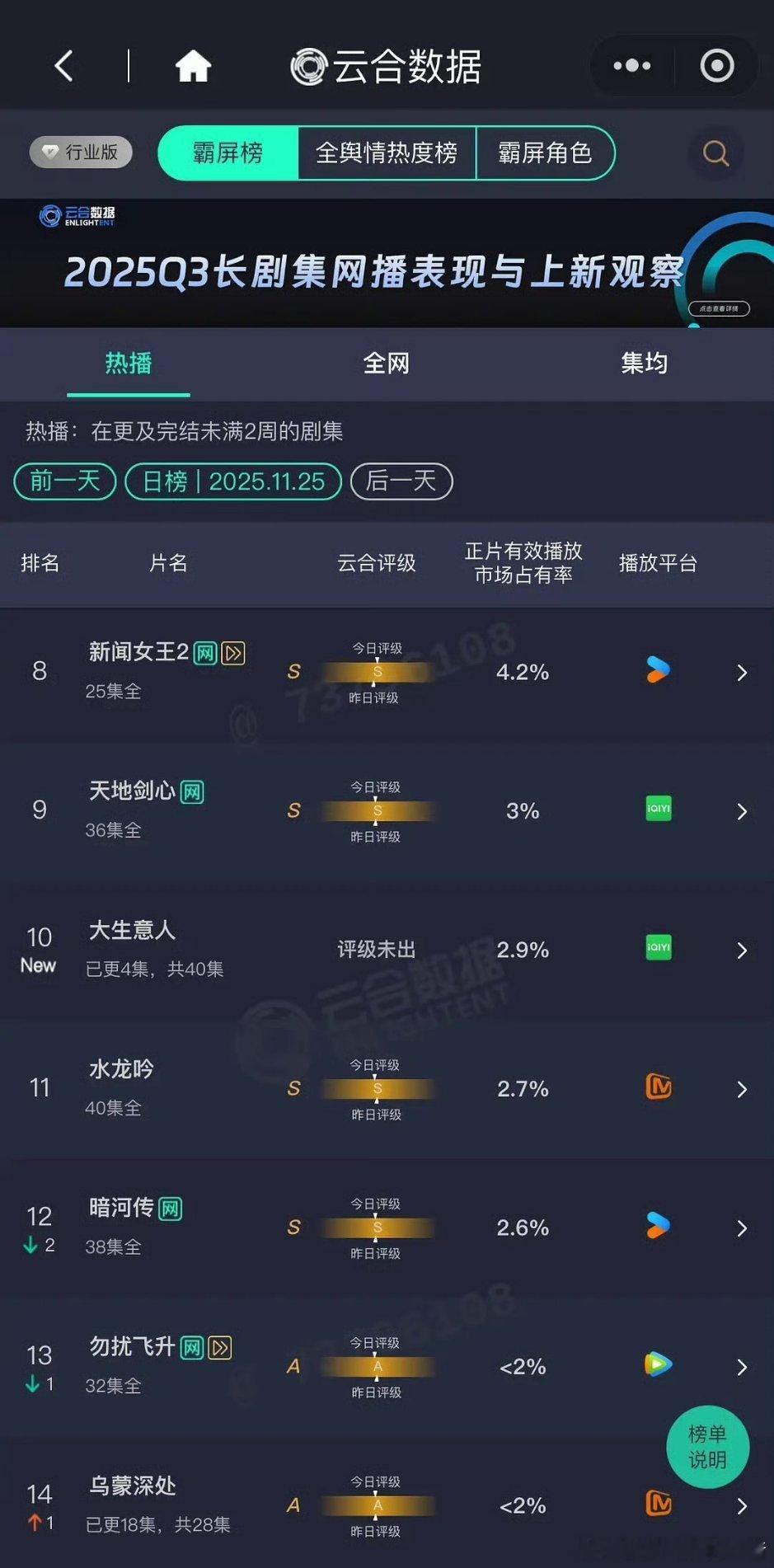 爱奇艺2025年剧集追剧人数成毅赴山海断层第一!