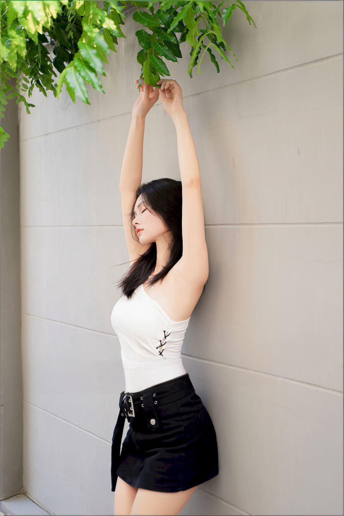 清纯甜美的笑容,令人心情愉悦,清新脱俗的穿搭尽显夏日风