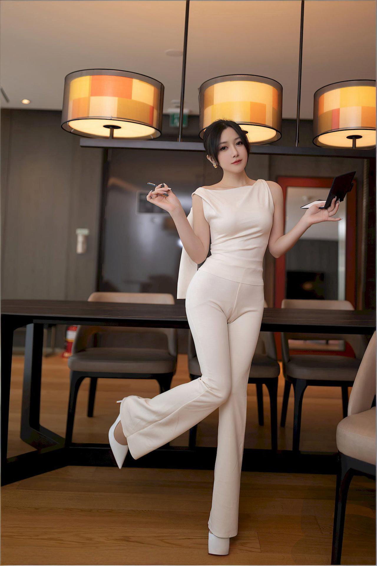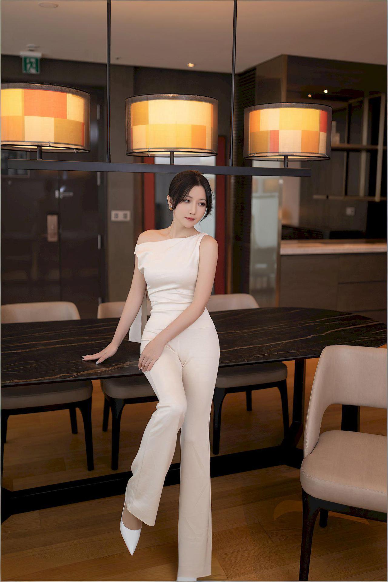 米色丝质上衣随风轻扬,同色系阔腿长裤衬得身姿愈发修长挺拔。三寸白色高跟鞋清脆地叩击地面,每一步都踏出优雅的韵律。 没有多余的装饰,极简的配色反而凸显了她苗条匀称的曲线美——那份恰到好处的轻盈与柔韧。阳光为她的轮廓镀上金边,整个人仿佛会呼吸的艺术品,在流动的光影中散发着温柔又自信的气质。 这身装扮,完美诠释了何为less is more的高级感