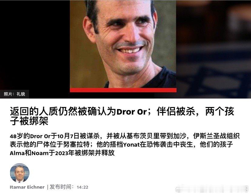 两人哈马斯又向以色列交还了一具人质遗体,目前加沙还有两名人质遗体,其中一名是泰国人。