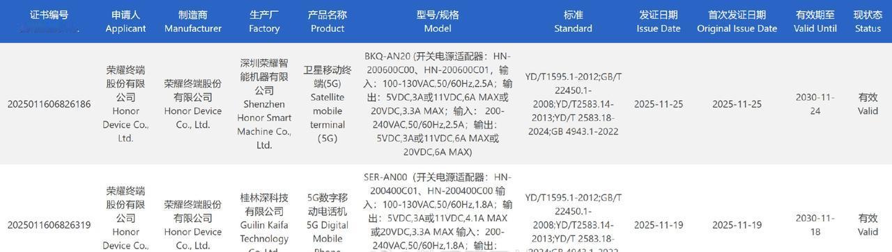荣耀新机型入网,代号BKQ-AN20,应该就是Magic8 RSR,支持卫星通信,支持120W快充。 在下面还有一个代号SER-AN00的手机,大家猜猜是哪一款?