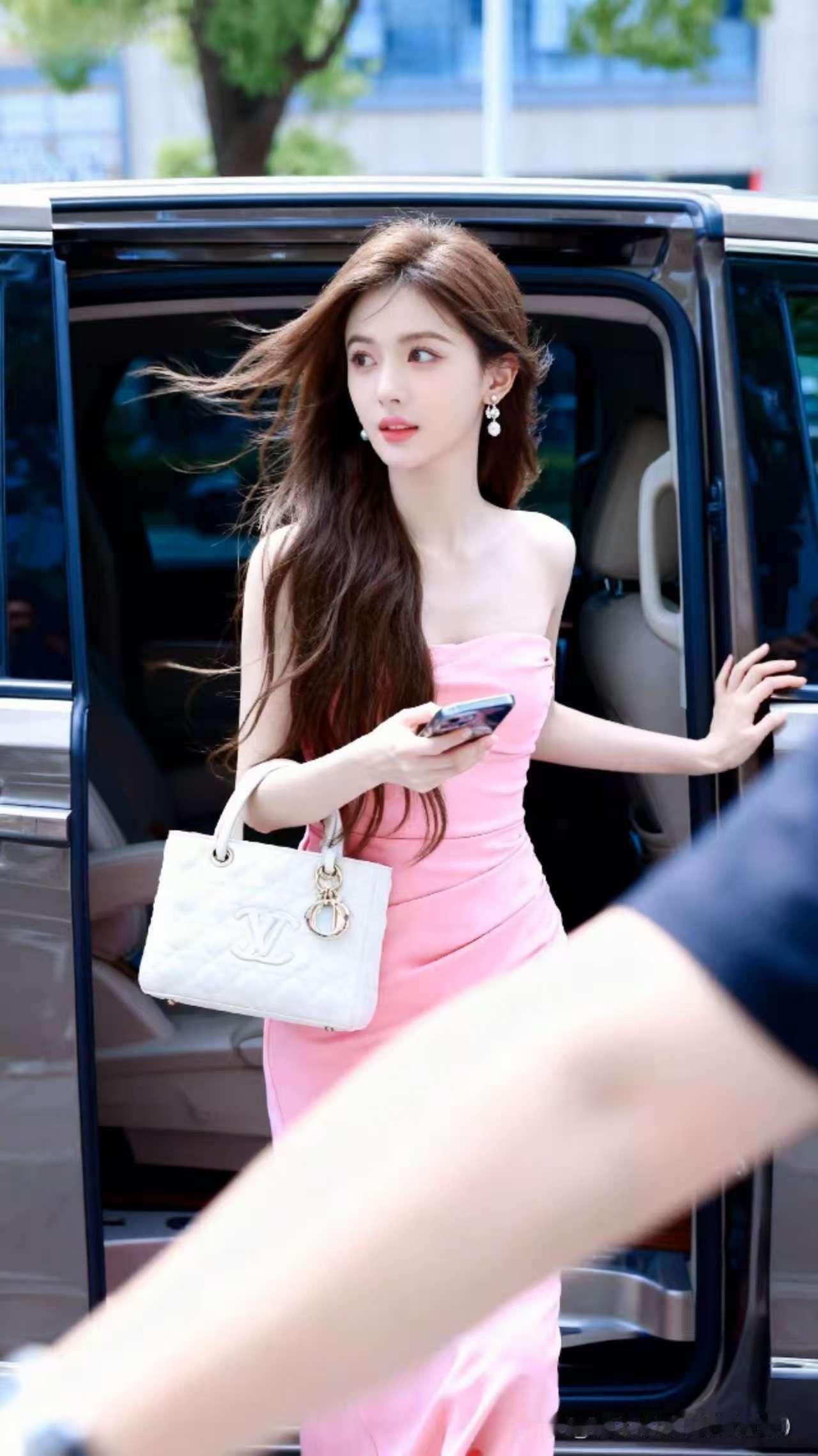 穿粉色晚礼服下车的女孩子,无任何不良导向