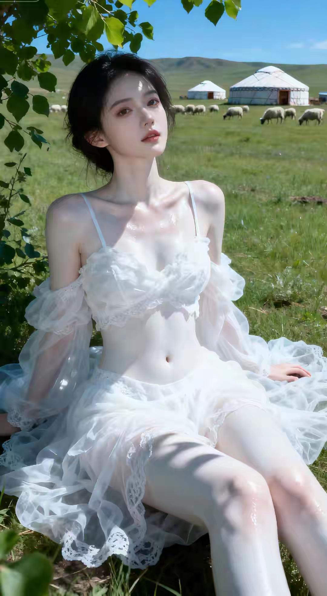 草原上的少女,与羊群共舞草原牧羊少女 草原美女写真