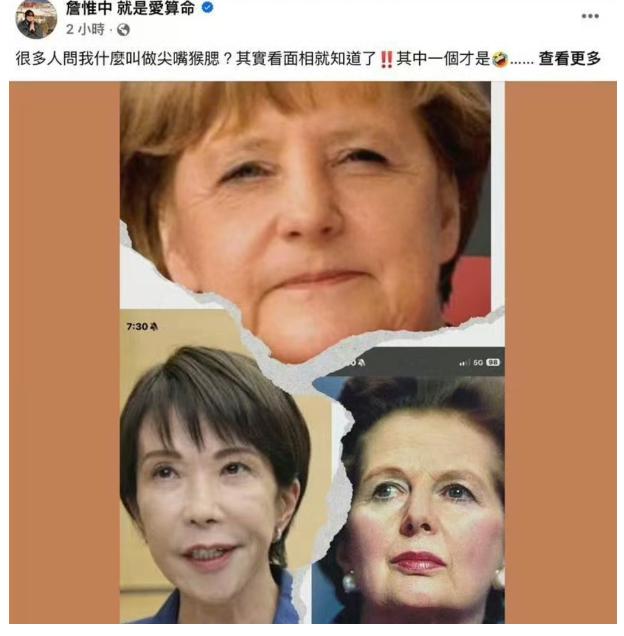 台湾皇民真是没救!11月22日台湾省命理师詹惟中,因为在网上暗示高市早苗“尖嘴猴腮,刻薄无福”,而遭到大批台湾皇民围攻,虽然此后她删除了帖子,但皇民依然不依不饶,跑到他其他帖子下谩骂。 詹惟中在台湾不算小角色,靠着命理分析上了不少综艺,平时发点生活感悟或者行业见解,粉丝都挺买账,谁也没料到这次聊到国外人物,会闹出这么大动静。 帖子发出去没俩小时,底下就涌进来一群人骂街,打头阵的正是那些被大家叫做“皇民”的群体,他们说詹惟中是人身攻击,还扣上“不尊重外国领导人”的帽子,骂声里夹杂着不少难听的话。 詹惟中大概也没料到反应会这么激烈,看势头不对赶紧删了帖子,本以为退一步就能息事宁人,哪知道这群人根本不打算罢休,顺着他的脸书主页翻旧帖,在每一条下面都留下谩骂的评论,连他分享的命理知识都没能幸免。 可能有朋友要问了,命理师靠看面相吃饭,平时点评几句相貌不是很正常吗?就算说得有点直接,也不至于闹到这种地步吧?这里面的门道,可不光是“点评相貌”那么简单。 高市早苗在日本政坛的立场很明确,对咱们这边不算友好,而台湾的“皇民”群体本来就对日本有着超乎寻常的崇拜,在他们眼里,批评高市早苗就等于冒犯他们心中的“偶像”,这口气自然咽不下去。 有台湾的网友私下跟我说,詹惟中要是点评的是其他外国人物,哪怕说得更直接,也未必会有这么大反应,偏偏选了高市早苗,刚好撞在“皇民”群体的枪口上,说白了他们冲的不是詹惟中的话,是话里针对的人。 这事儿里最有意思的点在于,詹惟中删帖后接受私下采访时说,自己就是看了高市早苗的公开照片,随口按命理行当的习惯评了句,根本没往政治上靠,哪知道会被上纲上线。 类似的事情其实早有先例,2023年9月,台湾有个博主在视频里吐槽日本某零食不好吃,就被“皇民”追着骂了三天三夜,最后逼得博主公开道歉才了事,现在詹惟中的遭遇,不过是换了个主角的翻版。 咱们换个角度想,就算詹惟中的点评不妥当,正常的讨论也该就事论事,可“皇民”群体上来就谩骂攻击,连删帖道歉都不接受,这种做法本身就站不住脚,更别说什么“尊重”了。 有熟悉台湾社会的学者说,这些“皇民”群体的心态很复杂,他们总觉得跟日本沾边就高人一等,容不得半点对日本相关人和事的批评,这种盲目崇拜已经到了失去理性的地步。 詹惟中这事儿还有个耐人寻味的细节,他的粉丝里也有不少理性的人,出来替他说话说“点评相貌而已,没必要上纲上线”,结果这些粉丝也被“皇民”一并攻击,说他们“不懂尊重”“崇洋媚外不够彻底”。 咱们平时聊天也会点评别人的相貌,比如“这人看着挺和善”“那人眼神有点凶”,本质上跟詹惟中的点评没区别,怎么到了“皇民”这里,就成了不可饶恕的罪过?说白了还是双标。 这件事闹到现在,詹惟中没再公开回应,脸书也暂时停更了,而“皇民”群体还在为自己的“胜利”沾沾自喜,觉得靠谩骂逼退了“冒犯者”,可在旁观者眼里,这种做法只会让人看清他们的狭隘和偏激。 崇拜某个国家的文化或者发展模式没问题,可要是崇拜到失去理性,容不得半点不同意见,甚至为了维护外国人物而攻击自己人,那就不是崇拜了,是迷失了自己的根。 人与人之间的交流,最讲究的是互相尊重和理性沟通,就算意见不一样,也该好好说话,靠谩骂和攻击解决不了问题,只会让人越来越反感,这一点不管在哪个地方,都该是通用的道理。 信息来源: Facebook——2025-11-22 詹惟中个人账号