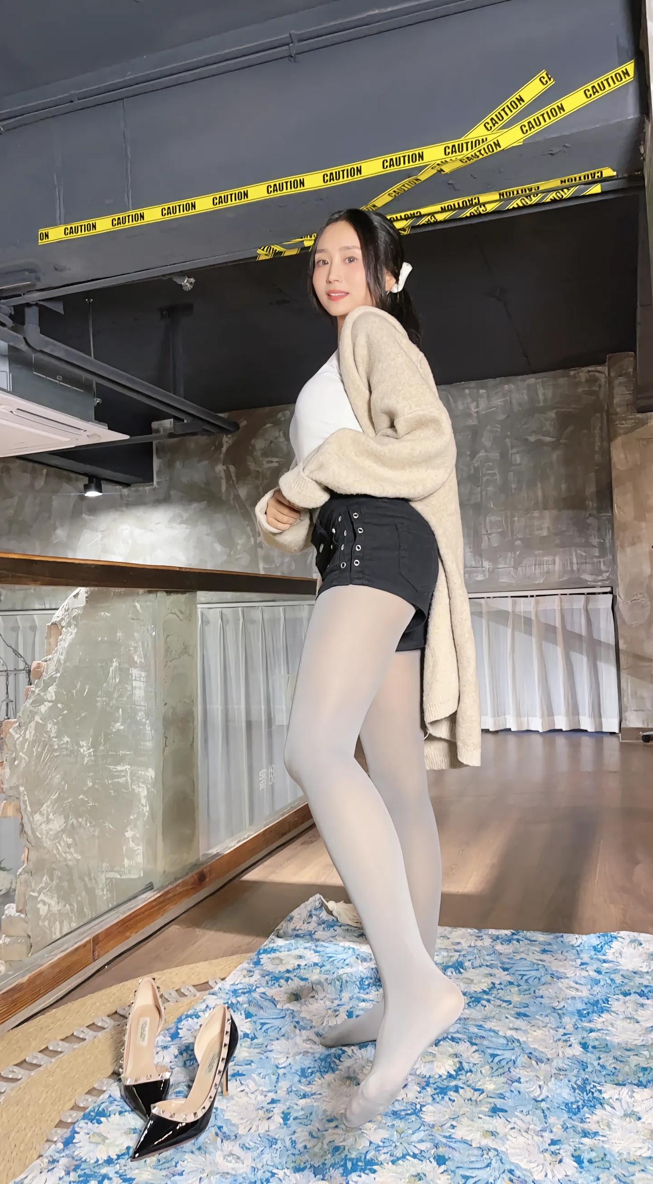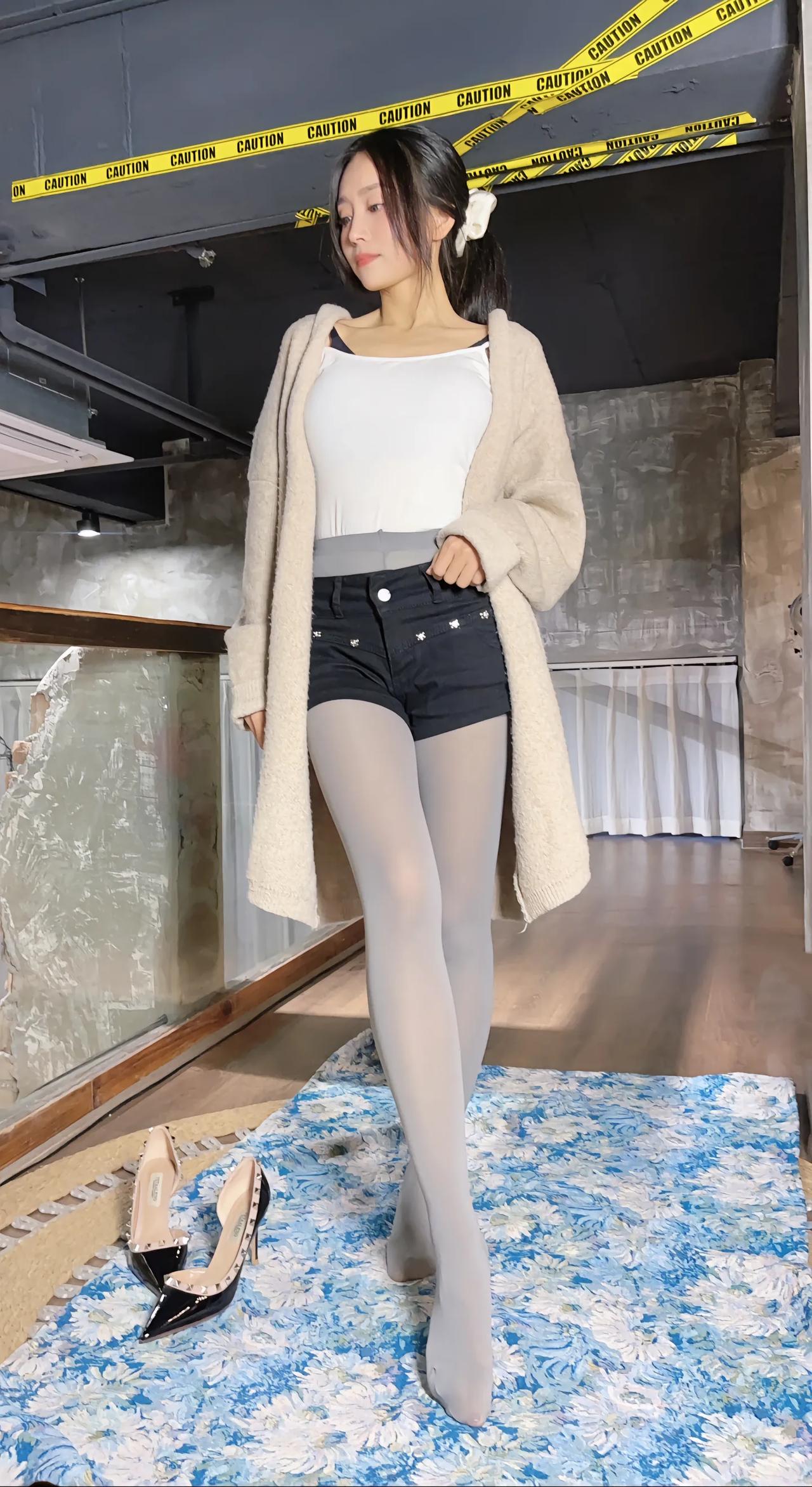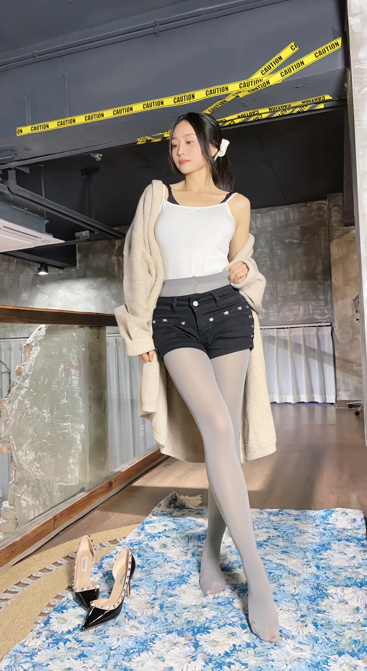 预警!奶杏开衫+黑短裤的松弛感杀招💥 透肤肉丝袜裹着细腻光感,马油材质自带柔光滤镜,每一步都踩在精致点上~ 黑蝴蝶结点睛轻熟氛围,意外撞色的警示带解锁混搭新玩法,职场通勤也能跳出沉闷,回头率直接拉满✨
