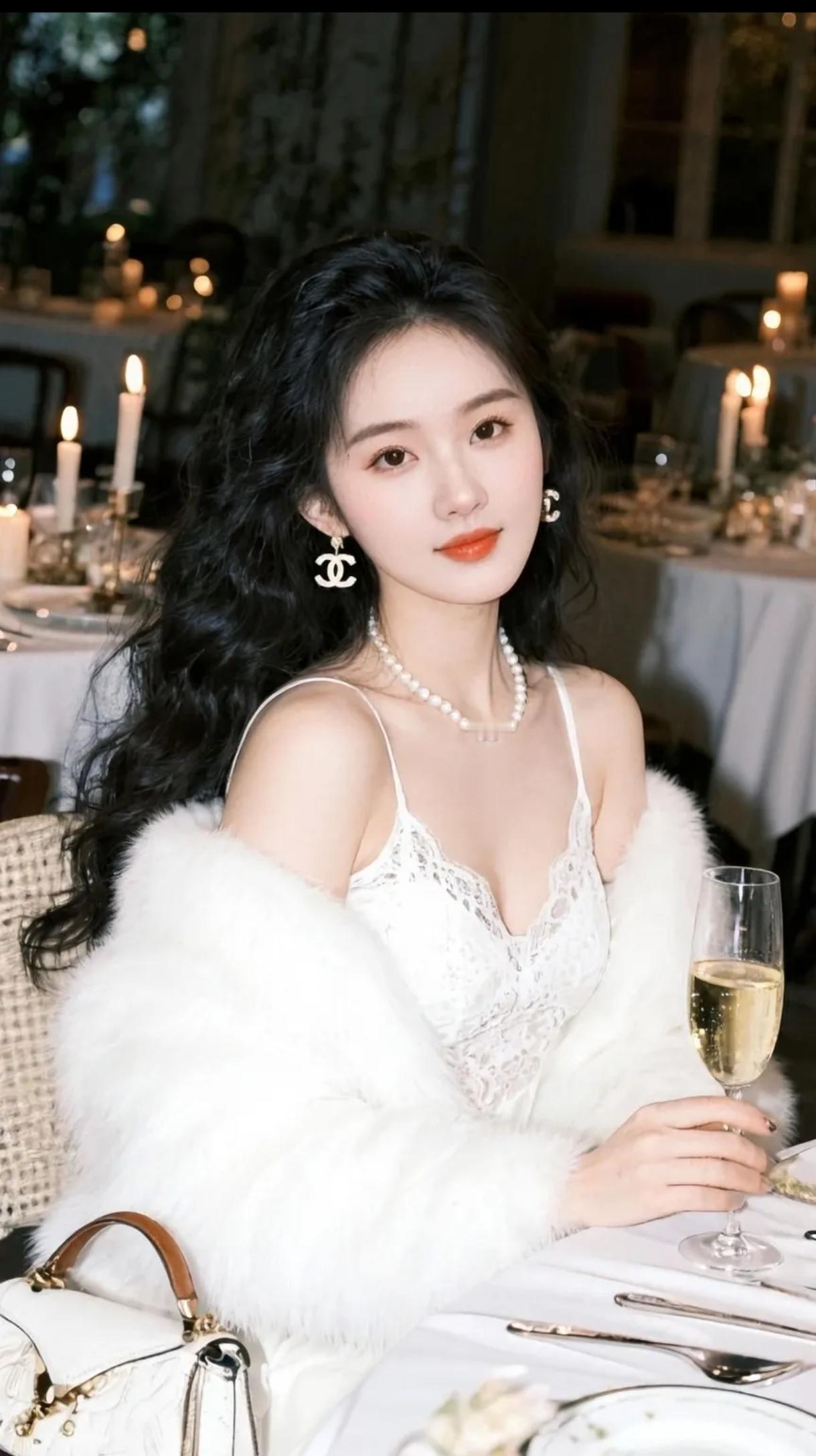 优雅晚宴,女士享受香槟时光。晚宴女神范时尚晚宴晚宴女神