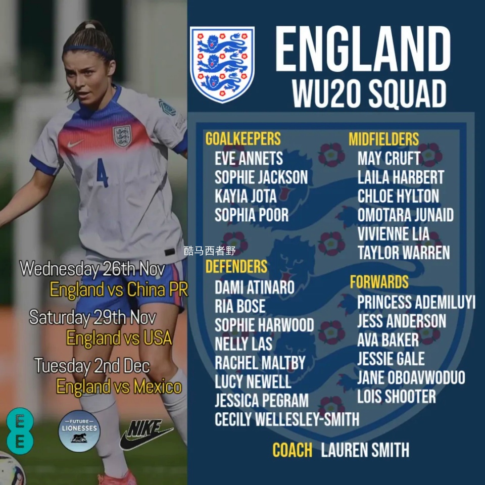 北京时间今晚12点中国U20女足将在西班牙皮纳塔尔首战英格兰U20女足,英格兰U20女足现任主教练劳伦·史密斯,34岁来自威尔士,曾任威尔士国青国少队主教练,做过英超热刺女足的助理教练和布里斯托城女足的主教练,此次共有24名英格兰球员被征召,这次参加皮纳塔尔杯是英格兰为备战明年9月在波兰举行的U20女足世界杯的首个集训营,这次参加皮纳塔尔杯的另外两支球队美国U20和墨西哥U20,也已经获得了参加明年U20女足世界杯的资格,所以,这次杯赛对中国U20女足来说,一个非常好的练兵机会