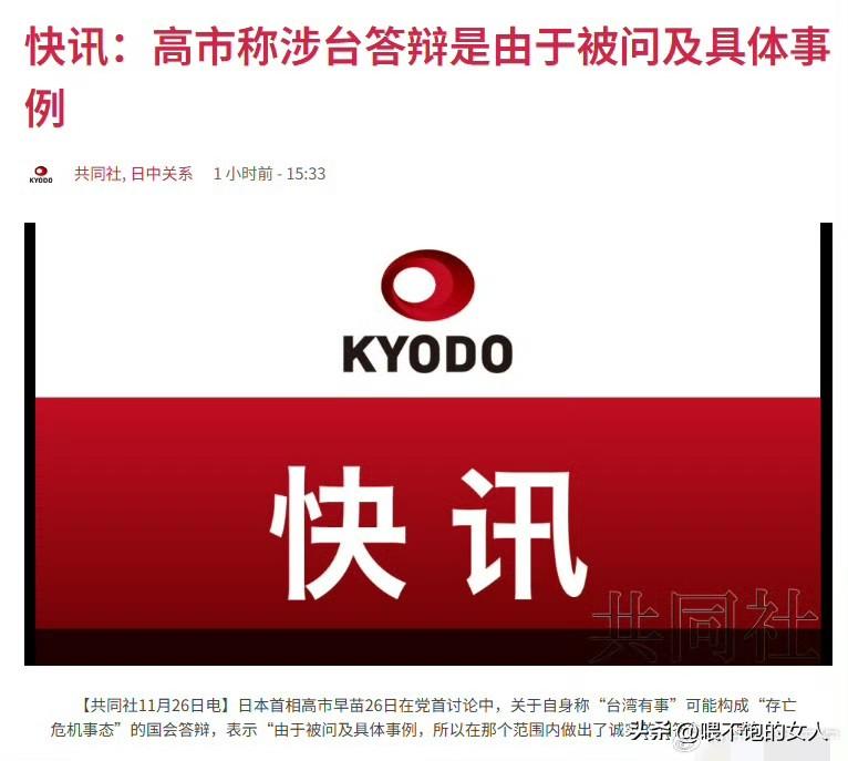 快讯!快讯! 就在刚刚,高市早苗最新解释和态度来了!据共同社,她在今天的党首讨论中说涉台错误言论是由于被问及具体事例才做了诚实的回答!并说,有责任与中国对话建立良好的关系,追求国家利益最大化! 我看她这个解释的态度,嘴巴还是有点硬,还是在狡辩,还是不想承认错误,在日本各界好多都对她的错误言论进行强烈反对的情况下,一些有识之士也提醒她赶紧撤回错误言论,否则,受伤害是还是日本国民,这是追求国家利益最大化吗?真是倭老鬼骗倭小鬼! 自古华山一条路,自己怎么上的台阶,自己怎么走下来,赶紧站出来亲口道歉吧,要不来不及了!