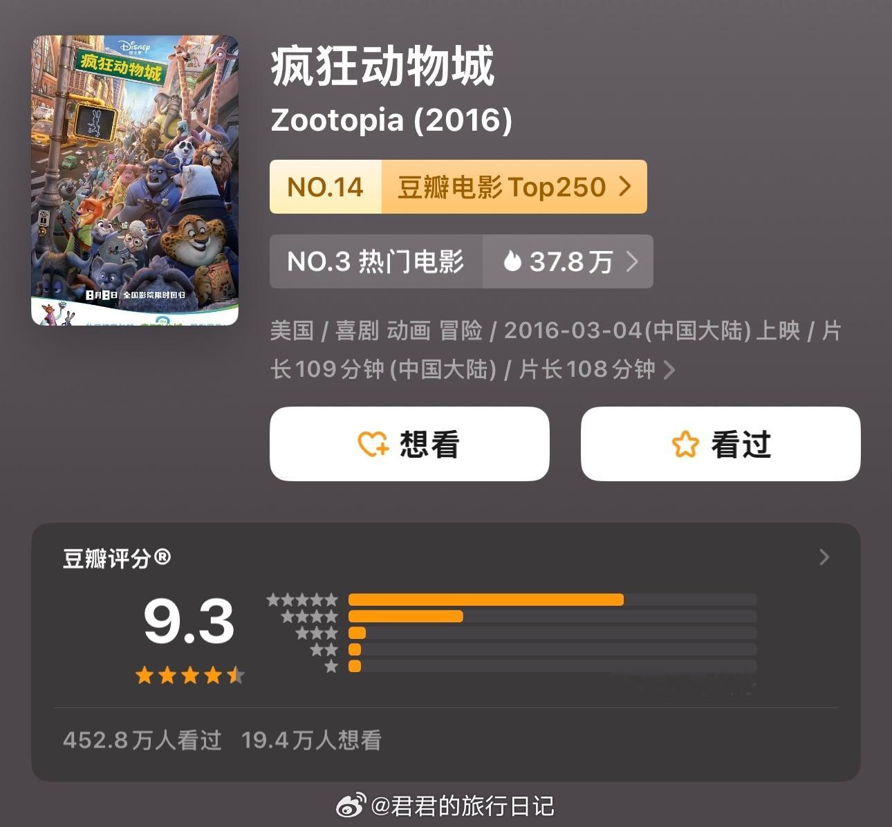 《疯狂动物城2》豆瓣开分8.7,已经很高了。不过第一部分数太逆天了,9.3