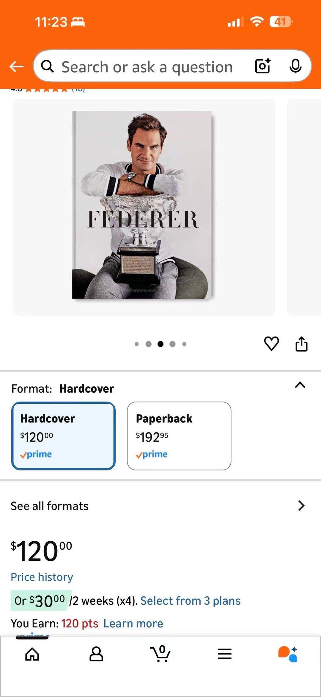 费德勒昨天在佛罗里达进行签售。有朋友给我发了这本著作的价格,属实被120、192美金的价格惊吓到了!