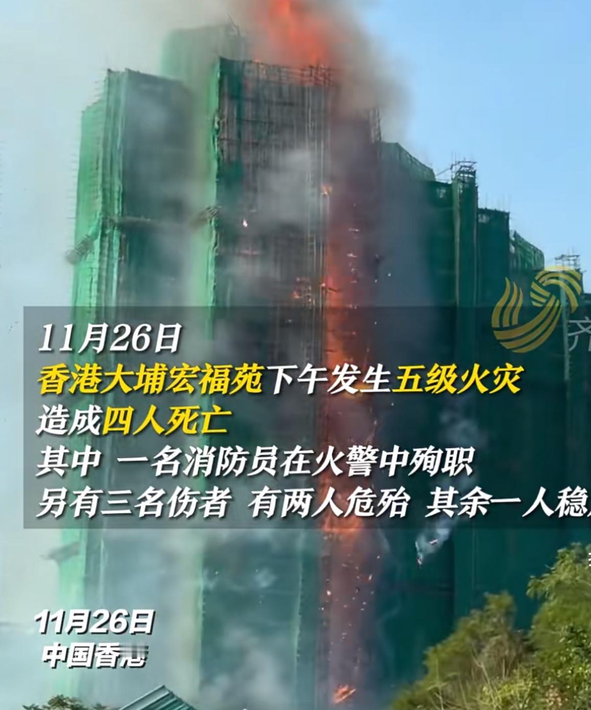 香港大火太可怕了,火势迅猛,七座大楼烧了数小时! 目前已知已有四人死亡,包括一名消防员殉职。 但是形势不容乐观,数百名居民登记家属失联。 据说这些楼正在修葺中,起火原因估计与此有关。 tvb18:30新闻还在燃烧🔥……心痛💔….希望伤亡能少一些!祈祷🙏 安全无小事,一定要时刻注意‼️