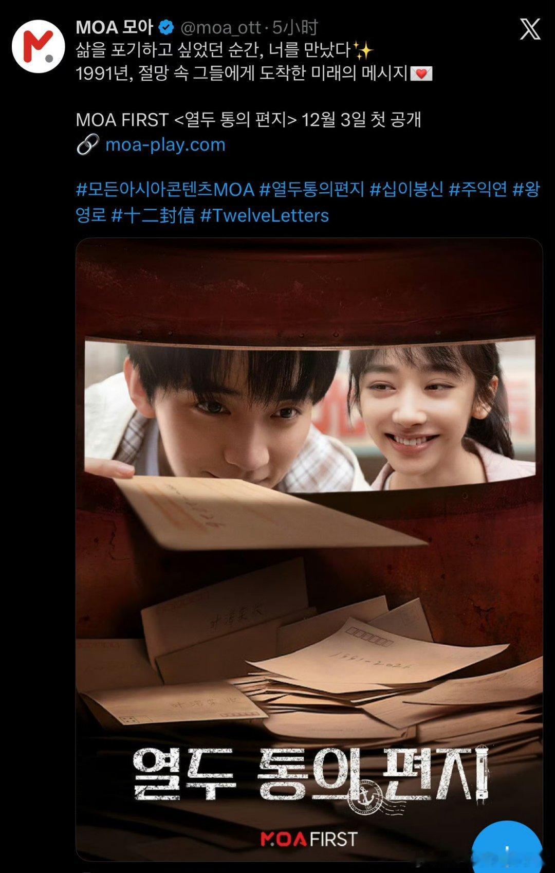 周翊然十二封信将在韩国播出,精品好剧值得,期待唐亦寻