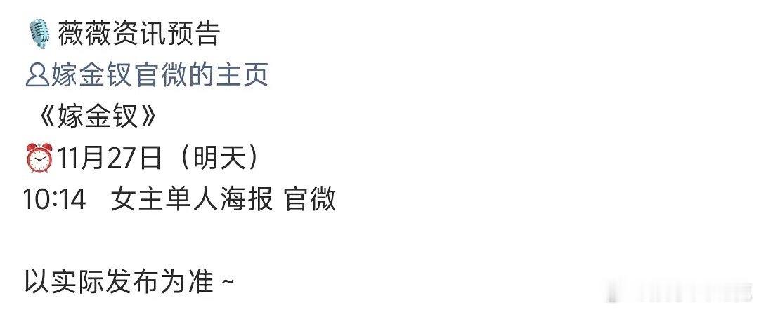 嫁金钗明天单独官宣诶!田曦薇大女主排面🈶