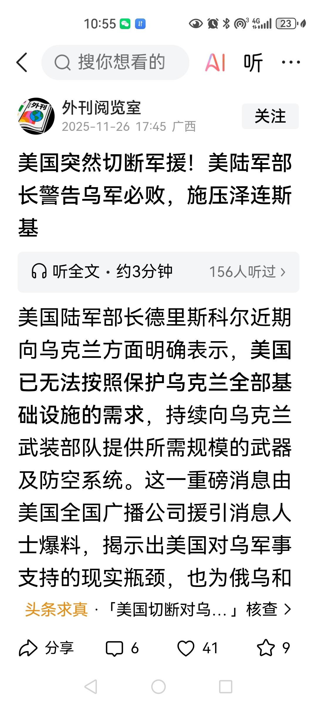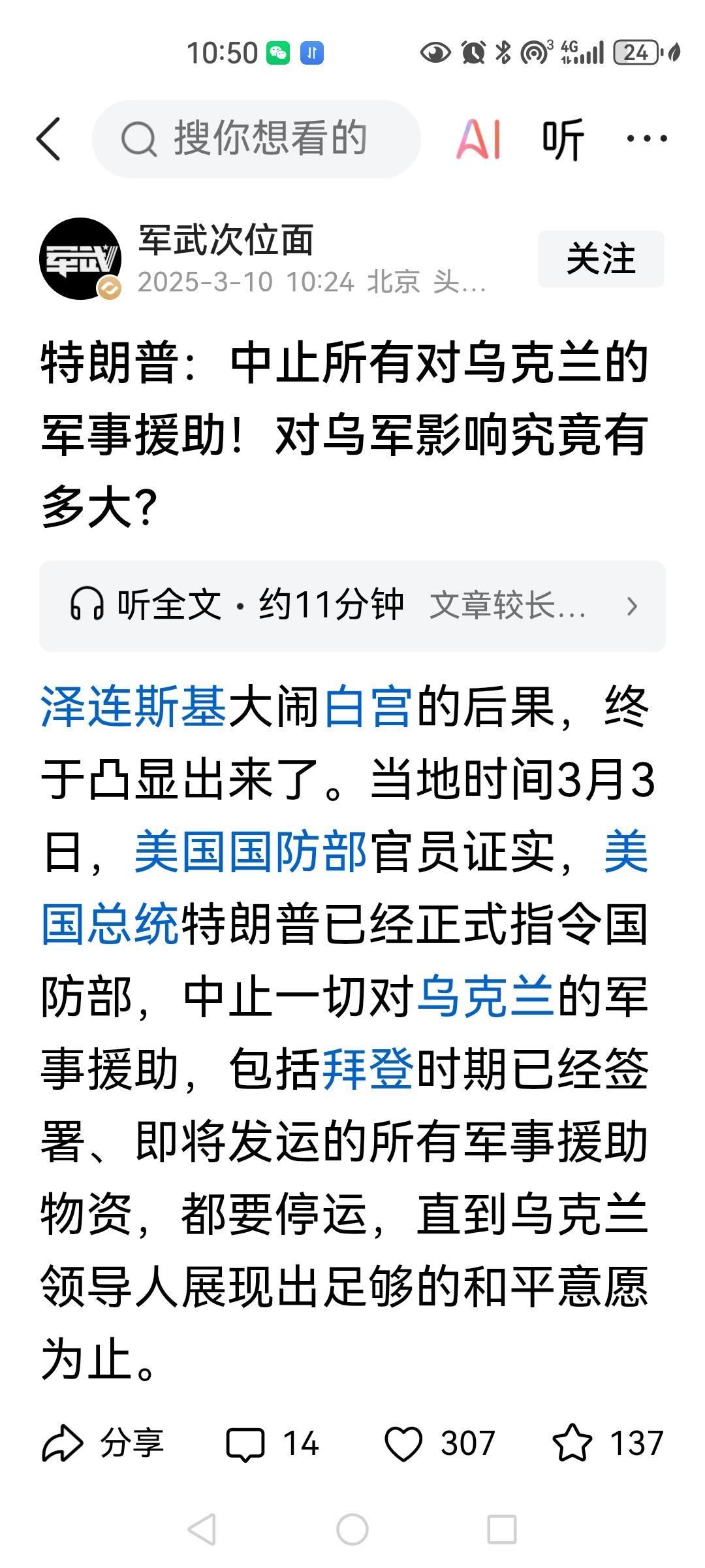 美国切断乌克兰军援是一方面,欧洲还可以提供一部分的军援,但是切断情报支持,对乌克兰来说是致命的,包括侦察卫星锁眼系列,美国的gps系列,是美军独有或者是性能最佳的的侦察系统,欧洲的伽利略系统,在军事侦察方面,好像没有特别好的报道,如果不与欧洲共享,欧洲那点侦察卫星和侦察能力,这场战争难以持续下去,这种做法无非就是逼迫乌克兰接受协议。美国政府刚柔并济,是在逼迫乌克兰就范,但切断乌克兰军援这条信息我没有查到有什么大报报道过此事,不知这些自媒体作者是从何渠道得知这条信息的?(我查到的官方媒体只有今年3月5号的)