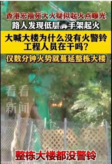 香港宏福苑大火起火点被一居民拍到,怎么也想不到一点很小的火源会引发如此大的灾情,让人痛心疾首,到目前为止消防员还无法到达高层救援,香港的消防车喷射水柱的高度不会超过40米,该建筑建设于1983年,原有住户1984户,居民4960人,要知道香港寸土寸金,一般楼宇之间的密度非常小,如果说上海的房价已经让你惊讶,那么香港的房价只能是惊叹,很多三线明星都是买很小的房子,有的一线明星也租房子,可以侧闻那里的房子是多么的金贵,从开始的一级预警到五级预警只用了四个小时,火势蔓延速度过快,给救援带来很大难度,据香港市民消息,起火原因尚不明朗,对于如此发达的地区很难理解他们还用竹手架。 目前大埔区附近因为交通或者任何因素受影响的学校27日将停课,会安排心理专家对情绪受到影响的学生提供适切支援,希望这次事件能快速结束。