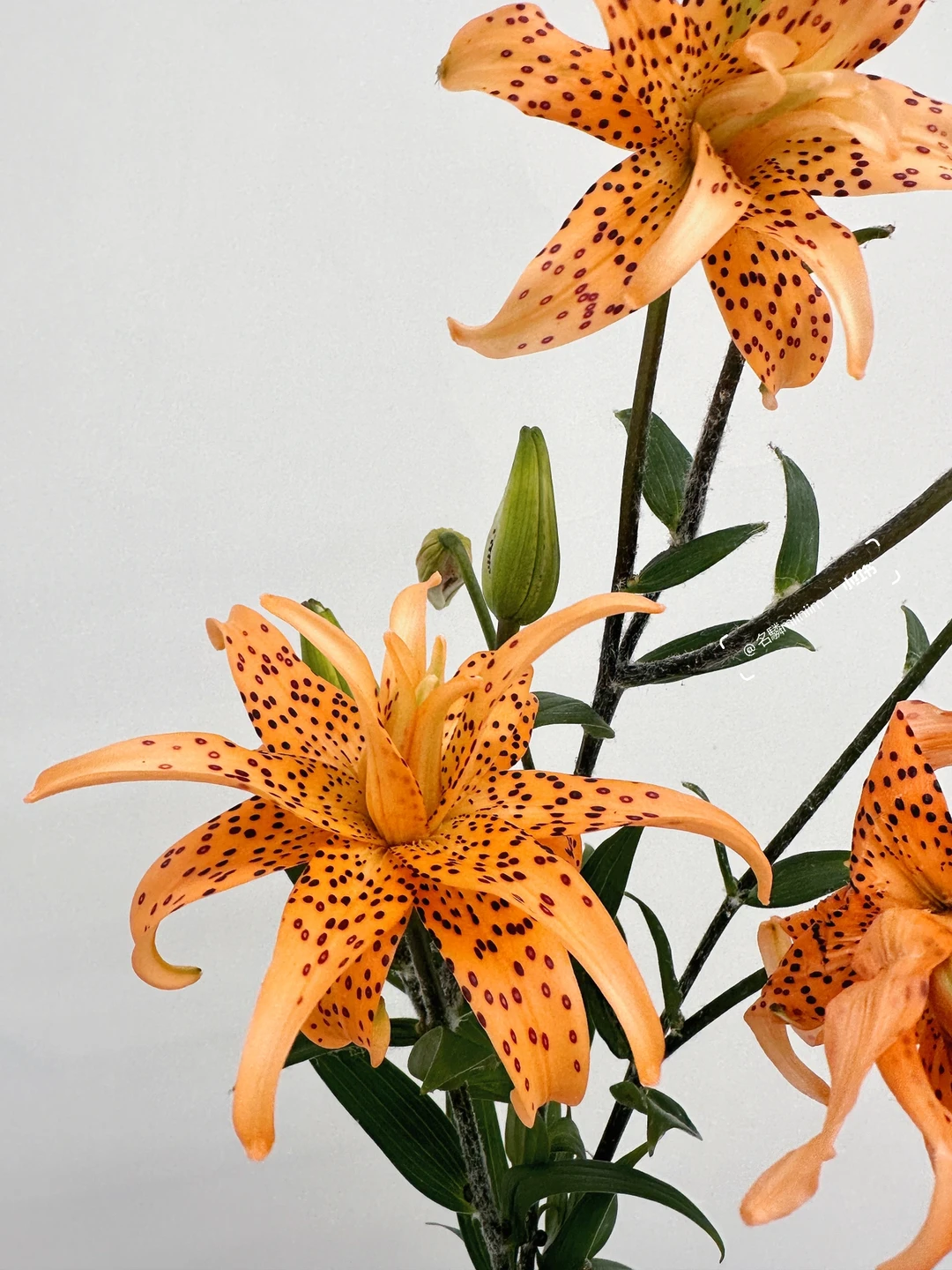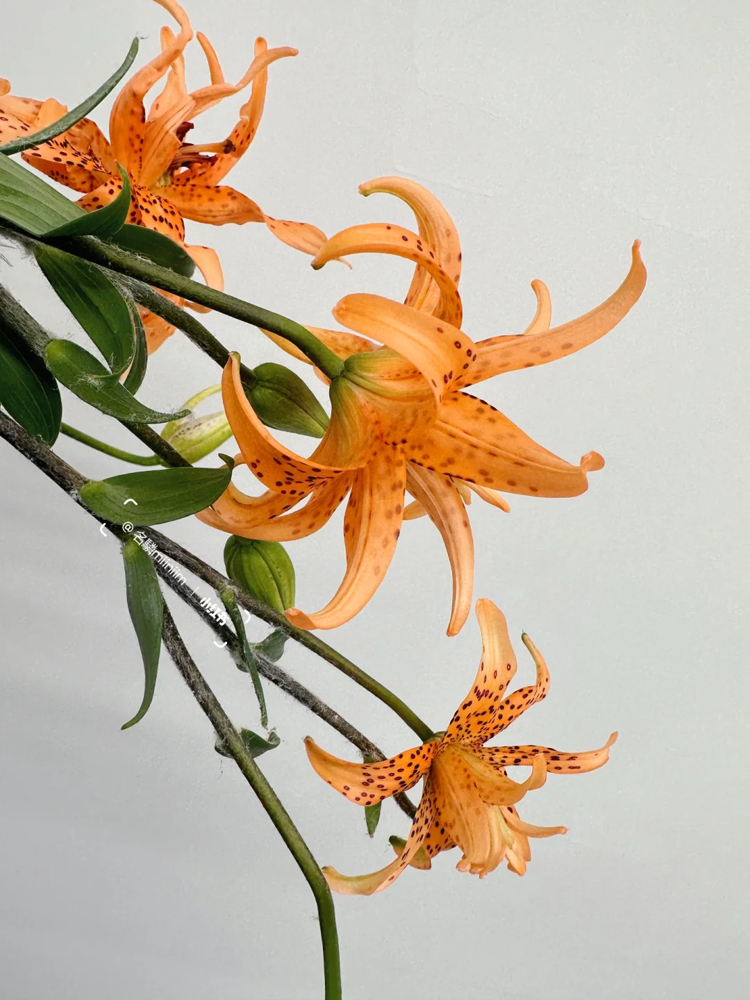 花材:虎皮宝宝•亚百合 亚百合相较于百合来讲花头更为精致小巧,颜色更为丰富,是一种很脆弱但是很优美的花材。虎皮宝宝是比较难开的一种。 养护 1⃣️换水:夏季每2日一次 冬季每4日一次 2⃣️清洗:花瓶清洗干净,擦掉水渍,花杆剪根冲洗 3⃣️水位:花瓶高度1/2 4⃣️修剪:根部以上2~3cm处45°斜剪 🌈|TIPS|长按自取|感谢喜欢|欢迎分享