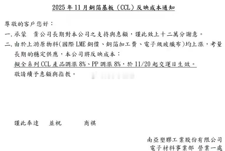 预计12月公示,2026年2月正式发布,同年6月起实施另外成本上升,可能导致价格