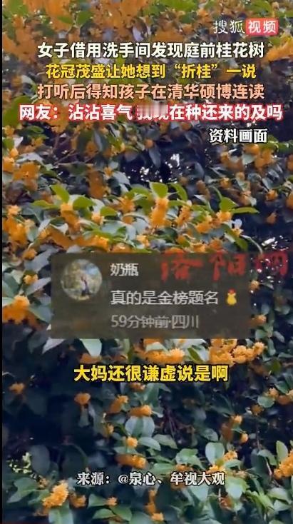 女子借洗手间偶遇“天价桂树”,随口一问惊掉下巴:原来“蟾宫折桂”从不是传说 谁能想到,一次偶然的借厕经历,竟撞破了现实版“蟾宫折桂”的浪漫巧合?女子出门办事时内急,情急之下向路边一户人家求助,屋主爽快应允后,她推门而入的瞬间就被院子里的景象惊艳——一棵两人合抱的桂花树长得枝繁叶茂,金黄的花瓣缀满枝头,清甜的香气扑面而来,瞬间驱散了所有窘迫。 看着这棵比普通桂花树粗壮数倍的“巨无霸”,女子忽然想起古人“蟾宫折桂”的典故,晋代郤诜曾以“桂林之一枝”自喻才华出众,往后“折桂”便成了学业有成的美好寓意。她随口跟屋主闲聊:“您家这桂花树也太气派了,难道是藏着‘折桂’的好彩头?” 屋主听完笑着点头,语气里满是骄傲又藏着谦逊:“这树是孩子出生那年种的,没想到陪着他长到这么粗。说来也巧,孩子现在正在清华硕博连读呢。”一句话让女子惊得瞪大眼睛,原来这满院桂香里,真的藏着“十年寒窗终折桂”的人生答案。 网友看完纷纷直呼“太灵了”,但只有真正了解学霸成长的人才懂,哪有什么“树神庇佑”,不过是日复一日的坚持与自律。就像石狮那家扁食店的老板夫妇,起早贪黑二十年经营小店,儿子从未补习却凭着每晚学到凌晨的韧劲,从初中280名逆袭成清华博士 ;河南那位保送清华本硕博的初中生,背后也是父母因材施教、尊重兴趣的默默支持。 这棵桂花树更像一个温柔的隐喻,它一年年扎根生长,正如学子在书桌前日积月累的努力。“折桂”从不是遥不可及的传说,而是把枯燥的坚持熬成甘甜的过程——是错题本上密密麻麻的批注,是拒绝诱惑时的坚定,是父母“红脸黑脸”的默契引导,更是面对目标时“非此不可”的执着 。 如今太多人焦虑“鸡娃”无果,却忘了最好的教育从来不是复制粘贴,而是像这棵桂花树一样,给予足够的耐心与空间,让孩子在自己的节奏里扎根生长。你家有没有什么藏着成长故事的老物件?或者见过哪些“冥冥之中自有天意”的巧合?欢迎在评论区分享~热点话题 月下桂树
