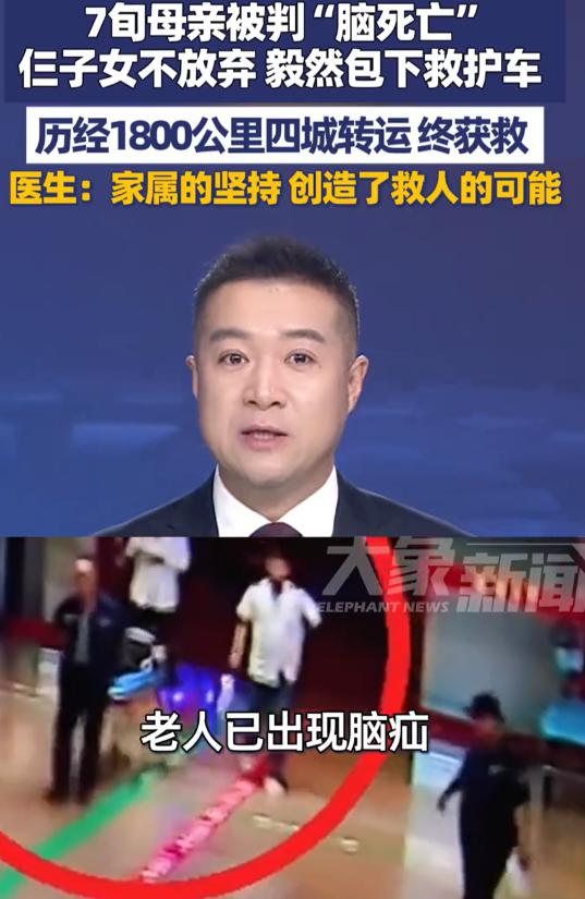 泪目!甘肃一7旬老人被判“脑死亡”,可子女不信邪,花4万包了辆救护车,跨越1800km,将老人送到西安大医院,到医院时老人已出现脑疝,女儿当场表态:我不想这样再把妈妈拉回去,请你再试试。最终,老人恢复自主意识,医生说:是家属的坚持,为我们创造救人的可能。 11月19日,75岁的刘老太在凌晨突然栽倒,右半身没了力气,人瞬间失去意识。 家人慌慌张张把她送进当地医院,检查结果出来后,所有人都傻了眼,颅内肿瘤破裂,出血量达到120毫升,生命体征极不稳定。 医生拿着检查报告,语气沉重地跟三个子女说,老人病情危重,已符合脑死亡的判定标准,继续抢救的意义不大,建议他们放弃,别再让老人遭罪。 这话像一块冰砸在子女心上,他们围着病床看着插着管子的母亲,监护仪上跳动的数字微弱却执着,没人愿意点头同意放弃。 大女儿抹掉眼泪,跟弟弟妹妹商量:“咱不能就这么把妈拉回去,咱换家大医院试试,哪怕只有一丝希望。” 这个决定一说出口,三个子女没有丝毫犹豫,当即开始联系救护车,目标是医疗条件更好的西安。 联系好救护车那天是11月20日清晨6点,天还没亮,冷风裹着细碎的雪粒打在脸上。 子女们把家里最厚的外套都塞在母亲身旁,护工反复检查着氧气管,司机师傅一边发动车子一边提醒:“翻秦岭的时候可能有暴雪,咱得慢点开。” 车窗外的顶灯在黑暗里跳动,监护仪的滴滴声成了车厢里最清晰的节奏,牵着每个人的神经。 从敦煌出发,经酒泉、兰州再往西安,1800公里的路程需要穿越秦岭山脉。 出发前气象预报就提示山区有暴雪,果不其然,车行至秦岭中段时,风雪突然变大,路面能见度不足十米,车轮在结冰的坡道上出现轻微侧滑,司机立刻减速并开启防滑模式。 比天气更凶险的是老人的病情,行至半途,监护仪突然发出尖锐警报,老人呼吸骤停,血压瞬间降到危险值。 随车医护人员立刻展开急救,一人负责胸外按压,一人快速调整呼吸机模式,另一人准备升压药物,子女们则守在一旁,紧紧盯着仪器上的数值,直到血压逐渐回升才敢松口气。 整整十八个小时的颠簸后,救护车终于在深夜驶入西安城区,一路鸣笛直接开进了西安国际医学中心的急诊通道。 此时老人的病情又有恶化,新出现的脑疝导致一侧瞳孔散大,完全依赖呼吸机维持生命。 神经外科高亚飞医生接到紧急会诊通知时,正在科室加班整理病历,放下手头工作就往急诊赶。 子女们紧紧跟在高医生身后,眼神里满是恳求,高医生没有立刻给出答复,而是快速翻阅转运记录和检查报告,同时细致查看老人的瞳孔反应和生命体征。 在评估过程中,他发现一个关键信息,老人因年龄原因存在生理性脑萎缩,这种情况恰好为受压的脑组织预留了一定代偿空间,这让救治有了突破口。 凌晨时分,神经外科团队紧急会诊后,很快敲定了“幕上开颅血肿清除与肿瘤切除术”的方案,“有机会,马上做。”高医生的话让焦虑的子女们吃了颗定心丸。 手术在灯光下紧张展开,清除血肿、切除肿瘤,每一个步骤都精准而谨慎,只为争夺脑组织的空间和功能。 术后的日子,子女们轮流守在病房外,不敢有丝毫松懈,术后第二天,康复团队就进了病房,开始帮老人做早期锻炼。 到了第三天早上,守在床边的儿子突然发现,母亲的眼睛慢慢睁开了,手指还轻微蜷动了一下。 他赶紧喊来医生,检查后发现,老人不仅恢复了自主意识,自主呼吸也逐渐稳定,终于可以脱离呼吸机了。 这个结果让所有人都红了眼,高医生后来跟人说起这事,总忍不住感慨:“是家属的坚持为我们创造了救人的可能。” 在他看来,老人的救治成功,离不开子女们千里转运的决心,要是当时他们听了当地医院的建议放弃,就不会有后来的生机。 后来老人转至血液二科接受个性化治疗,药物和康复交替推进,右侧肢体的肌力慢慢恢复。 所有人都知道,这场重生的背后,是子女们赌上所有的坚持,是医护人员全力以赴的救治,更是那场雪夜里千里驰援的不放弃。