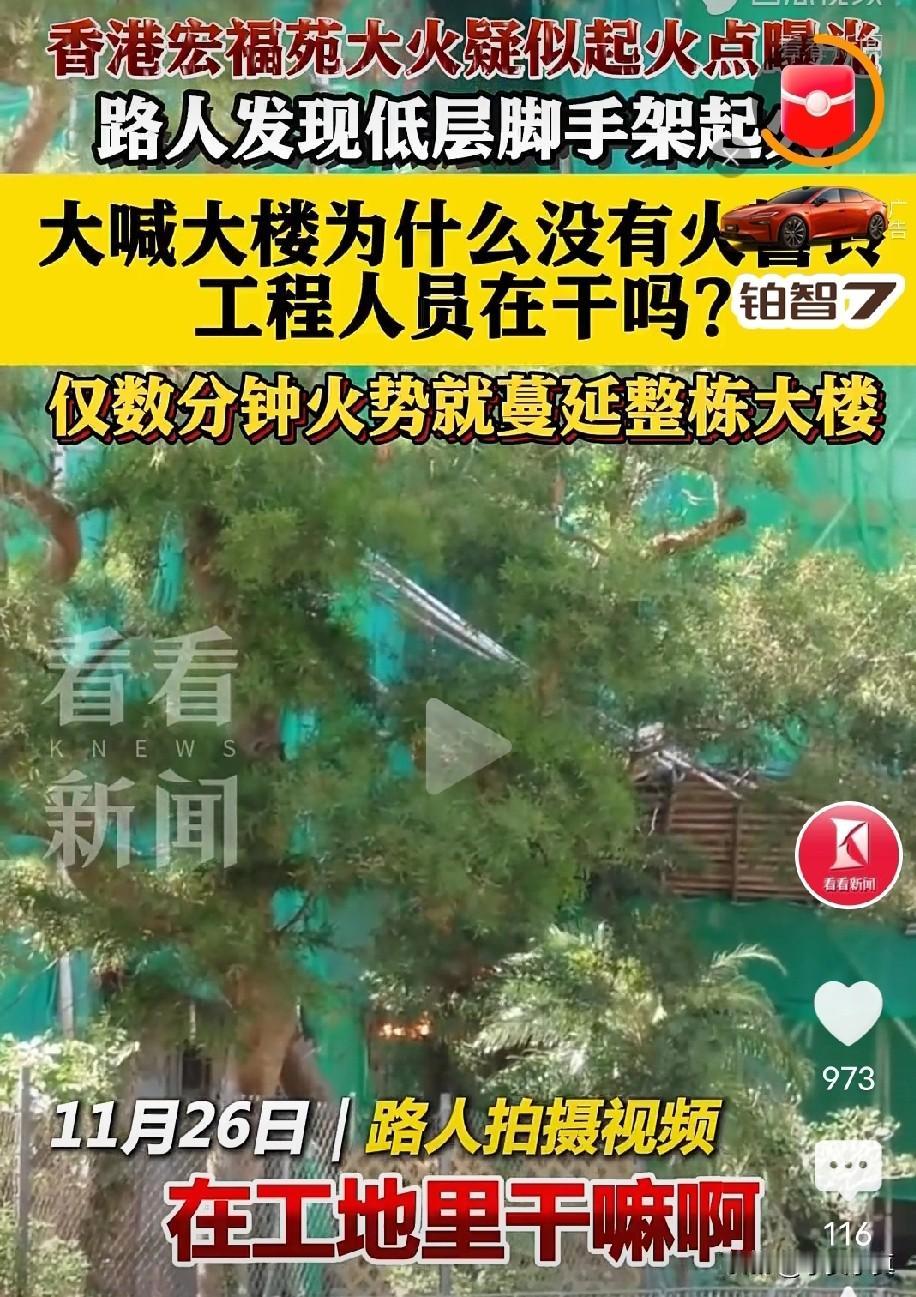 香港大火至36人死亡,属于人为造成的,作案嫌疑人被路人拍到, 11月26日下午2时51分,香港宏福苑的一栋楼宇突发火情,无情的火焰借风势迅速蔓延,短短4小时内火警级别一路攀升至五级,最终波及周边7幢楼宇,一场突如其来的灾难打破了社区的宁静。截至目前,火灾已造成36人遇难、279人失联的沉痛后果,现场火情虽已基本受控,但这场灾难留下的伤痛与牵挂,仍牵动着无数人的心。 灾难发生后,香港特区政府迅速启动应急响应。11月27日凌晨,保安局局长邓炳强对外通报,经现场初步调查,本次火灾不排除刑事案件可能性,目前已移交香港警方作进一步深入侦查。这一消息让事件更添沉重,也让公众对真相的探寻多了一份迫切——每一个生命都值得被尊重,查明火灾原因、追究相关责任,是对遇难者的告慰,也是对公众安全的负责。 与此同时,救援与安置工作在争分夺秒地推进。当晚,临时庇护中心便紧急开放,为家园被毁、无法返家的居民提供临时落脚点。社会福利署第一时间派出社工、临床心理学家等专业人员驻守,用耐心的倾听与专业的疏导,为受灾群众和遇难者家属缓解情绪冲击。从搭建临时安置点到提供生活保障,从情绪安抚到后续帮扶,一系列务实举措,让在灾难中饱受惊吓与伤痛的人们,感受到了来自社会的温暖与支撑。 这场五级大火,是对城市应急处置能力的一次考验,也让我们看到了危难时刻的守望相助。消防救援人员逆行冲锋,在浓烟与烈火中与时间赛跑;社区邻里相互扶持,为受灾同胞伸出援手;社会各界纷纷关注,为救援与安置工作建言献策。灾难面前,个体的力量或许微薄,但汇聚起来的暖流,却能为困境中的人们撑起一片天。 目前,火灾原因仍在调查中,失联人员的搜救工作也在持续进行。我们期盼着能有奇迹发生,也坚信相关部门会以严谨负责的态度,还原事件真相,给所有受影响的家庭一个交代。同时,这场悲剧也敲响了消防安全的警钟,无论是老旧楼宇的设施改造,还是日常消防安全意识的提升,都亟待进一步加强。 伤痛或许难以瞬间抚平,但温暖从未缺席。愿逝者安息,愿失联者能早日归家,愿这座城市能在伤痛中汲取力量,筑牢安全防线,让每一位市民都能在安稳的环境中生活。
