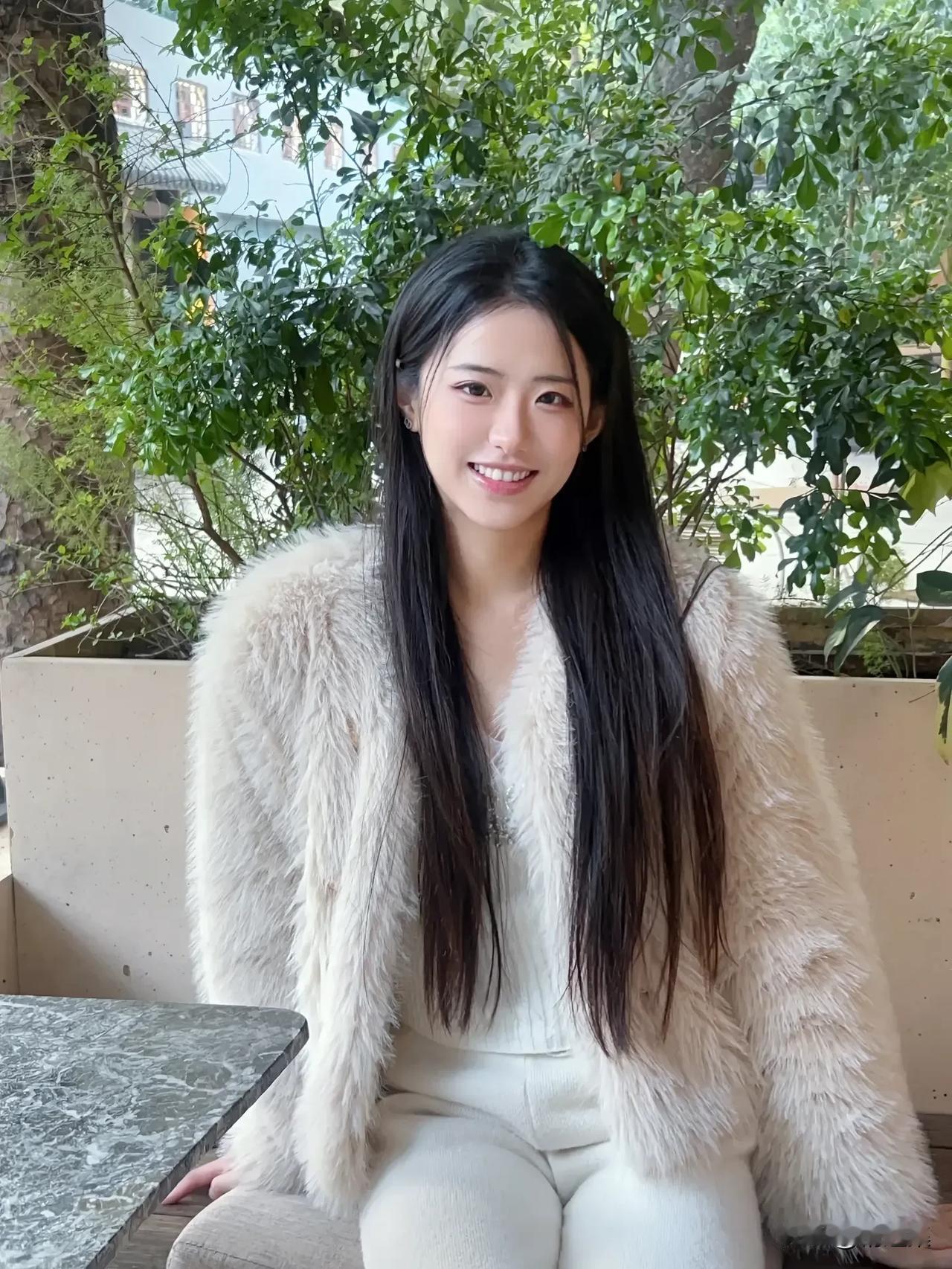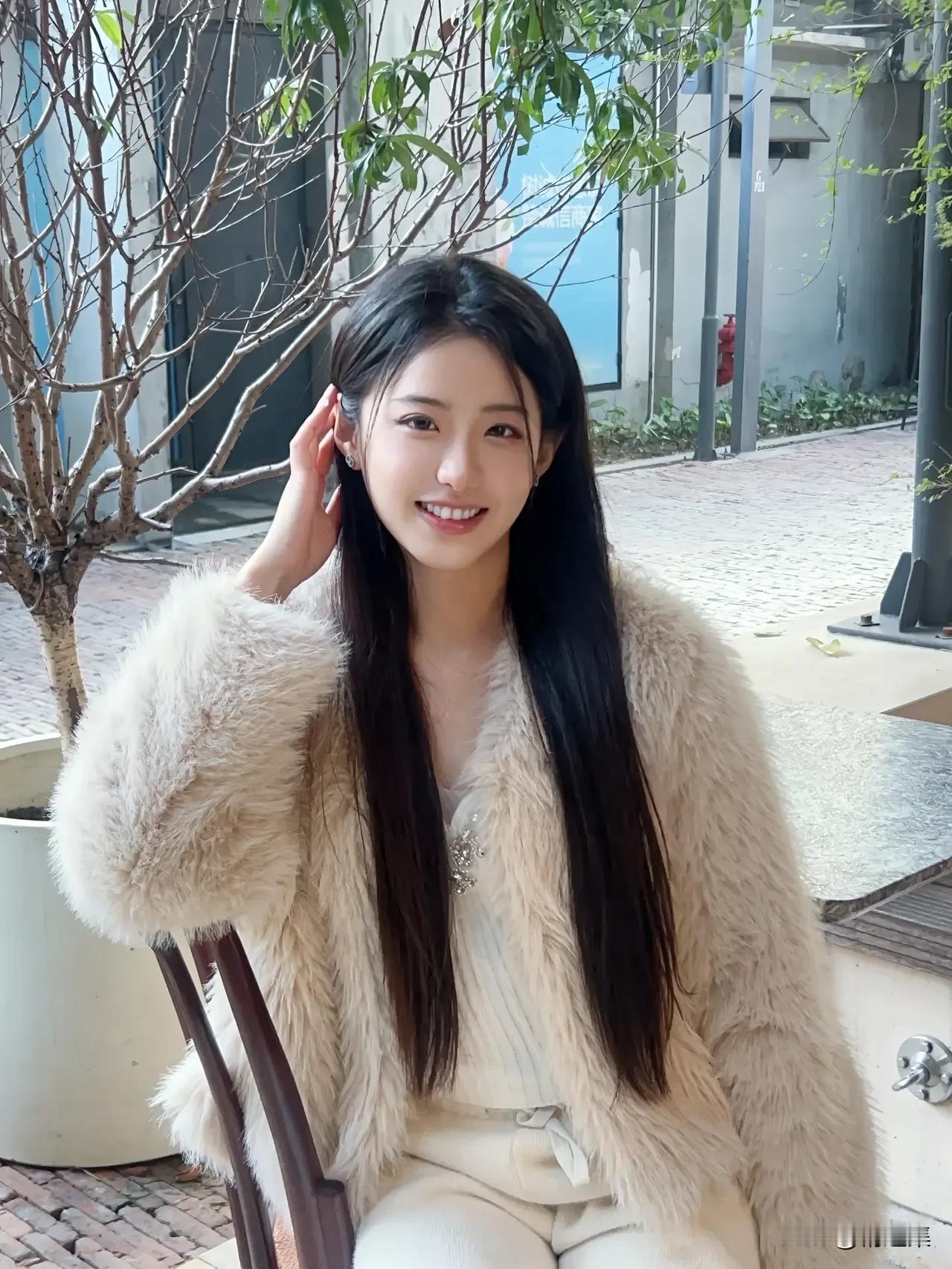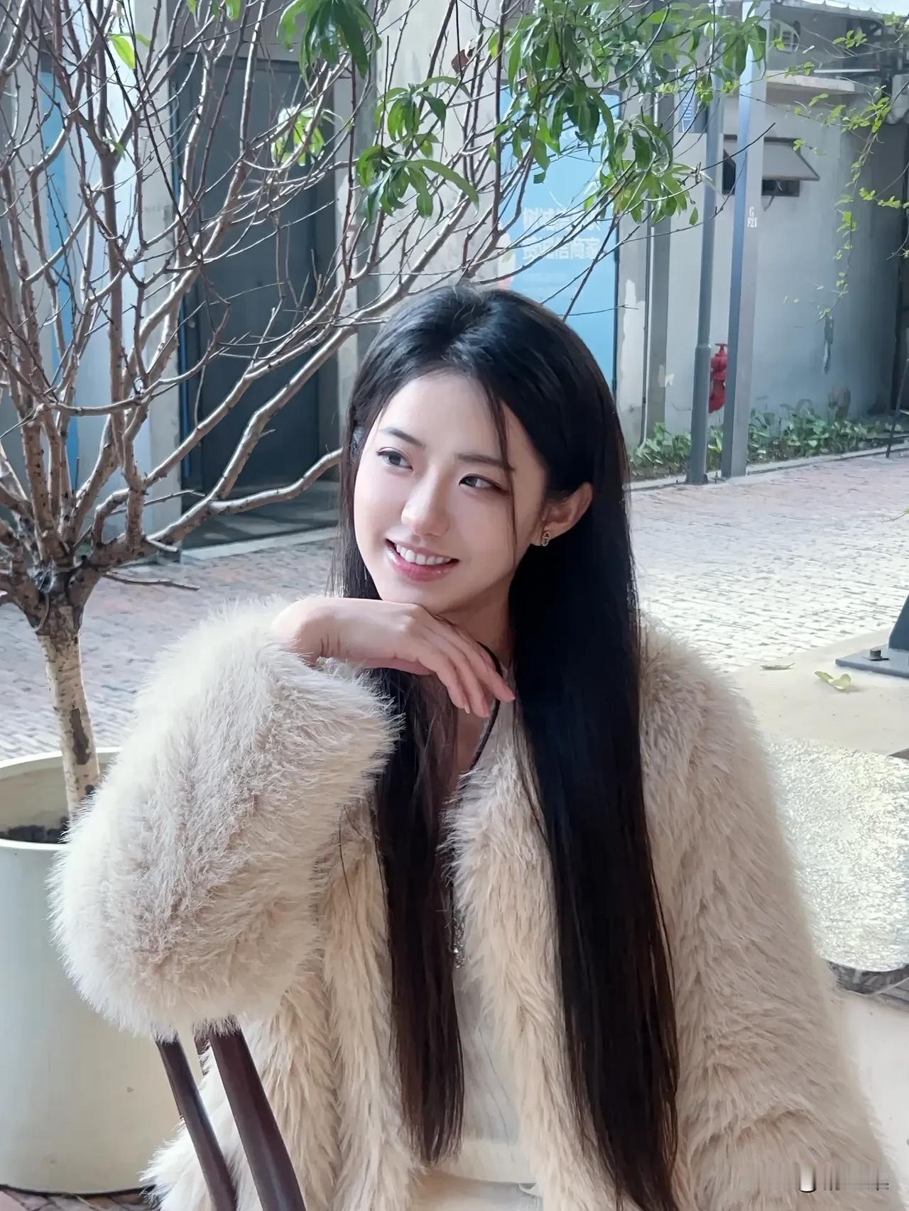 冬日暖阳下,毛茸茸外套与甜美笑容的完美搭配🌞🧥😊