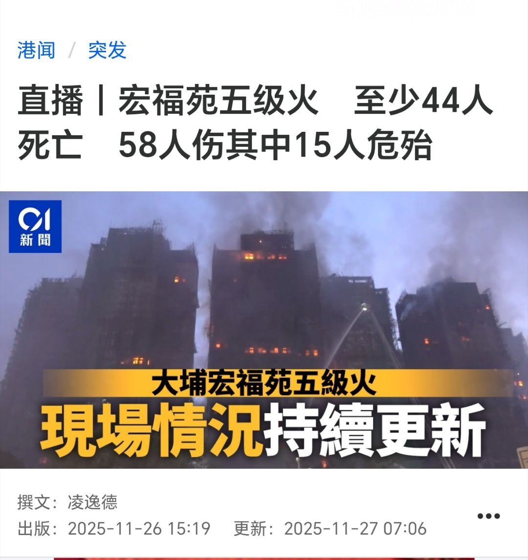 香港火灾已有55人遇难香港宏大埔福苑火灾,已造成55人死亡、72人受伤,其中包括