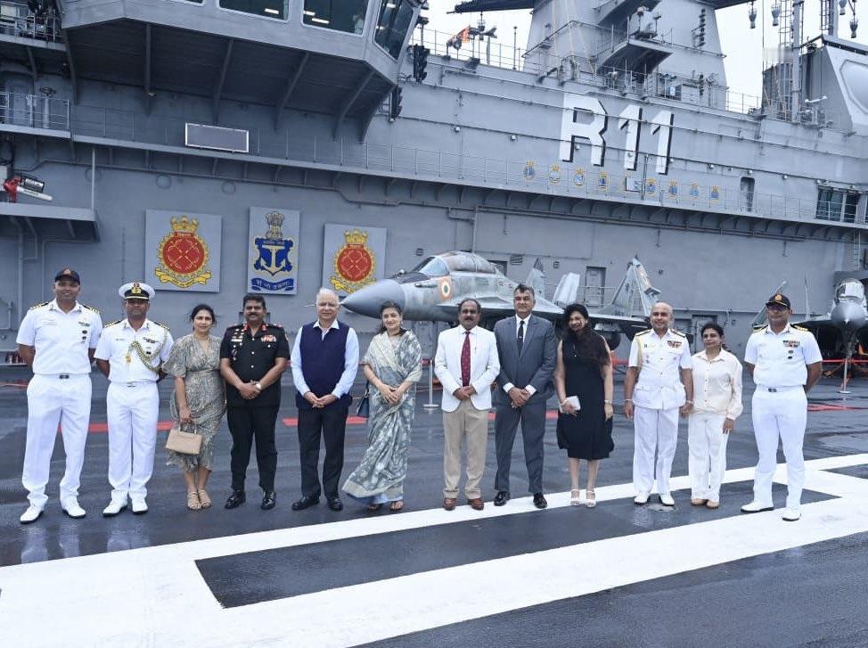 印度海军“维克兰特”号巡洋舰在斯里兰卡。为庆祝斯里兰卡海军成立75周年的国际舰队检阅的一部分,印度海军的本土航空母舰INS Vikrant抵达斯里兰卡。