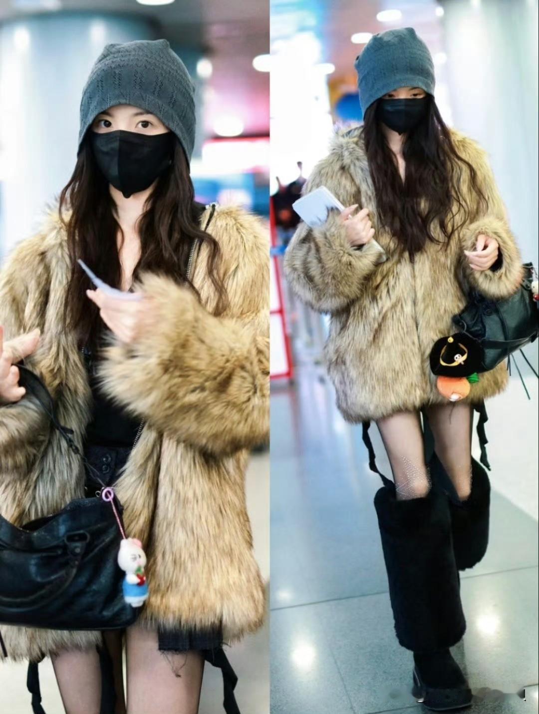 杨超越这个机场造型也太扎眼了。 金黄色皮草➕黑丝袜➕黑色毛毛靴,妥妥滴贵妇打扮。包包上的可爱小玩偶,又展现了少女的俏皮感。 感觉如果是杨幂穿这套,会更适合一些。 杨超越这个年龄,无论是气场,还是气质,都和这套衣服格格不入。 好在她的脸长得是真美,虽然也是农村出身,但是身上却没有土气和“穷酸气”,真的是老天追着给饭吃的条件。 难怪啥也不会,也能在娱乐圈占有一席之地。 冬日生活打卡季 杨超越黑丝