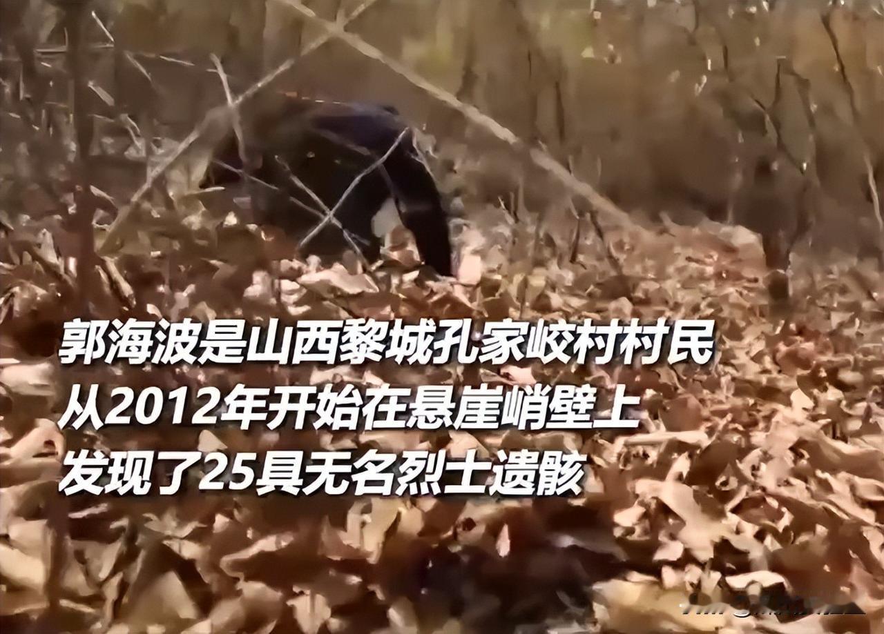 山西大叔进山捡尸13年,妻子骂不务正业,却获央视力挺,内情感人![嘘] 在山西长治的太行山区,农民郭海波持续十三年做着同一件事——寻找长眠于此的抗战烈士遗骸,帮助他们魂归故里。 这一切始于2009年秋,他陪村里老人上山时,在灌木丛中发现一块特殊的人骨,老人辨认出这是抗战烈士的遗骨,这个发现让郭海波深受触动,从此踏上了寻访之路。 他的坚持与家族记忆有关,曾祖父曾是八路军129师的村干部兼医生,家里至今还珍藏着当年的账单和粮单,听着这些往事长大的郭海波,对这段历史有着特殊的情感。 寻访工作充满挑战,每次进山他只带镰刀和干粮,有些山路坡度接近七十度,需要在荆棘中徒手开路,最困难的一次,他在结冰的河面上滑行数小时,才在一处石缝中找到烈士遗骨。 经过多年实践他总结出一套方法:先向村里老人打听线索,再按图索骥,烈士安葬处通常有刻着信息的砖石,或是留下特殊标记的小土堆,这些都是重要线索。 这项工作需要极大耐心,有时连续几年都没有收获,但郭海波始终没有放弃,他说想起当年八路军战士穿着草鞋行军打仗,自己遇到的困难就不值一提。 十三年来他已帮助二十五位烈士找到归宿,这件事逐渐被更多人知晓,还获得了央视报道,一些热心网友也主动为他筹集资金,支持这项事业继续下去。 山西农民郭海波13年如一日寻找抗战烈士遗骸的故事,在网络上引发网友们广泛讨论。 “在新闻上看到郭大叔的故事,突然想起我爷爷也是抗战老兵,他们那代人用生命换来今天的和平,有人还记得他们真好!” “13年找到25具遗骸,平均一年不到2具,这不仅是体力活,更是对意志的考验,想想我们做事情三个月没结果就放弃,真是惭愧。” “要是我老公天天往山里跑,我可能比郭大嫂骂得还凶,但正是有这样的人,历史才不会被遗忘。” “要把这个故事讲给学生听,爱国教育不是口号,而是郭大叔这样用脚步丈量历史的实际行动。” “我们国家需要更多这样的民间力量参与历史保护,官方力量有限,像郭大叔这样的普通人,正在补上历史记忆的重要拼图。” “大叔爬山13年身体还这么硬朗,看来爬山比健身房管用啊!” “他捡起的不只是遗骨,更是一段段被遗忘的历史。” 您怎么看待郭大叔13年的坚持?在您家乡是否也有类似守护历史的人?欢迎在评论区分享您的见解和故事! 信息来源:央视新闻