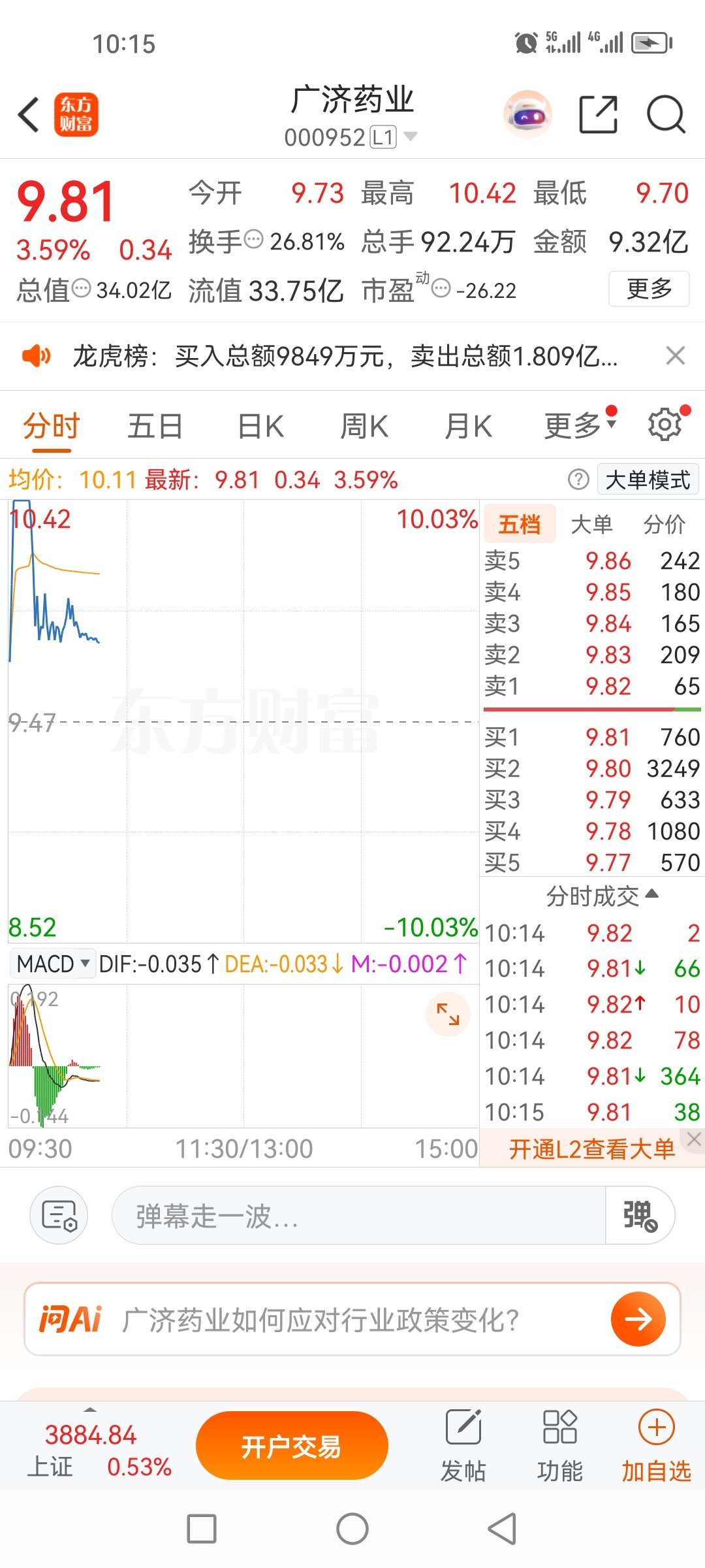 昨天盘前分享的广济药业000952,今天涨板了,你们说还有机会涨回去吗?
