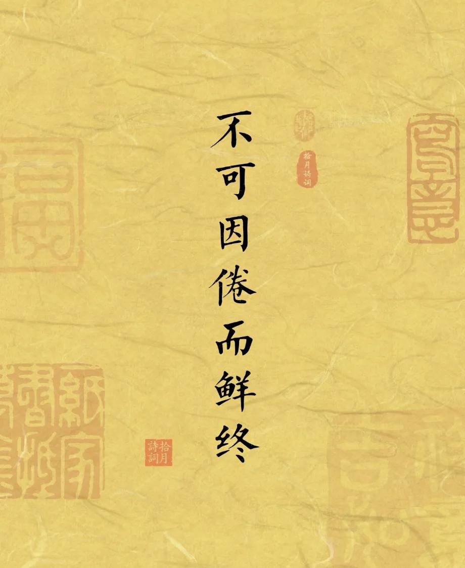 不可乘快而多事,不可因倦而鲜终 ——《小窗幽记·集法篇》 古人的智慧堪称人生清醒剂。顺境时意气风发,便急于扩张、贪多求快,殊不知“快则易乱”,欲速则不达;逆境中身心俱疲,就敷衍了事、半途而废,却忘了“行百里者半九十”。 生活从不是百米冲刺,而是一场需要张弛有度的马拉松。得意时收住锋芒,稳扎稳打;倦怠时守住初心,咬牙坚持。别让一时的浮躁毁了长远的路,也别让片刻的疲惫辜负了曾经的付出。 愿我们都能在快慢之间找对节奏,在倦累之时坚守终局,方能行稳致远,不负此生。 (图片来自“拾月诗词”)