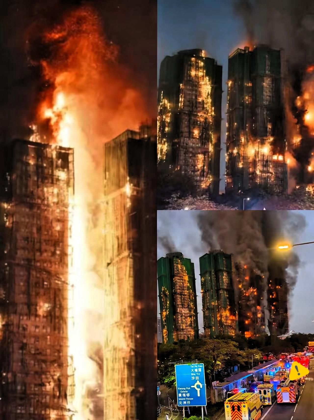 朋友颤抖的声音还在耳边,香港这场大火烧得太让人揪心了!44条鲜活生命消逝,7栋楼