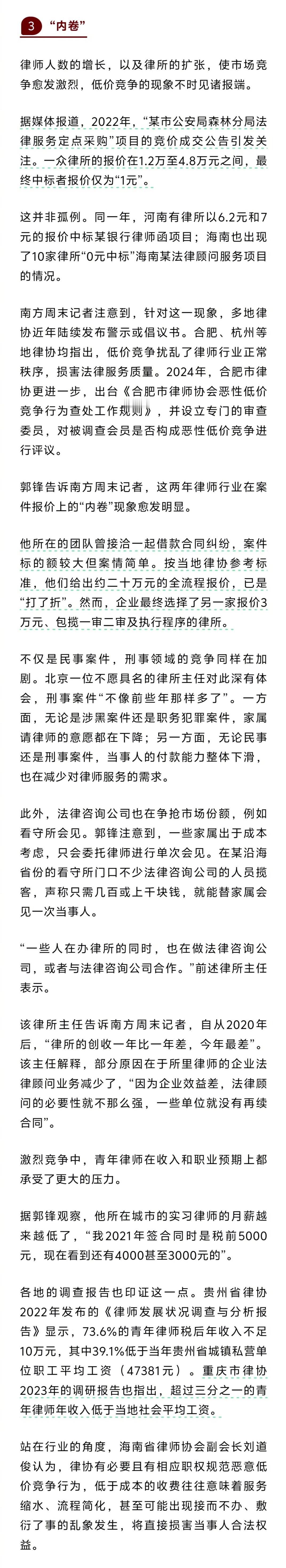 刚看到『南方周末』的一篇文章,没想到律师行业内卷成这个样子了。