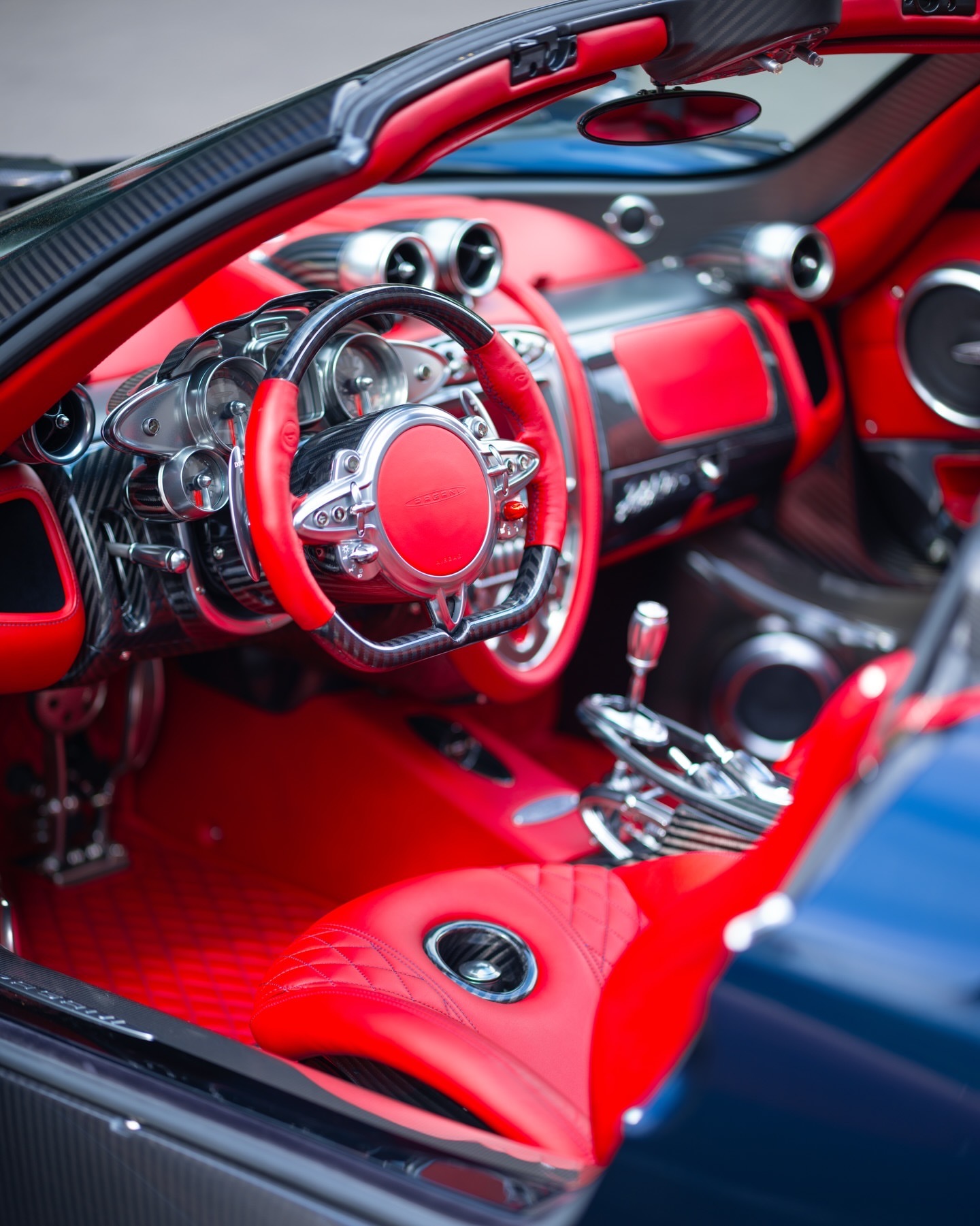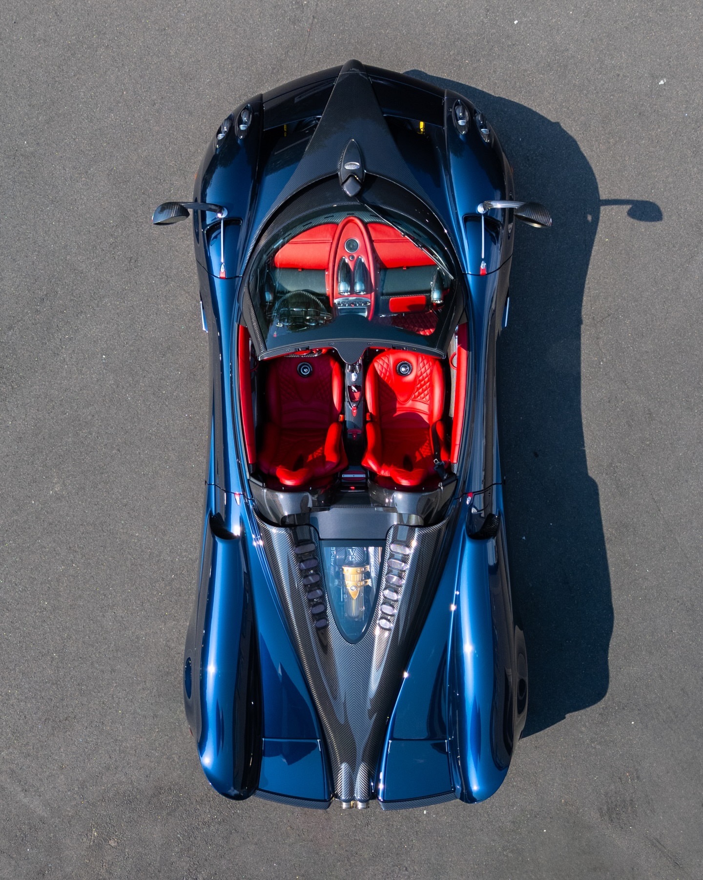 这款Pagani Huayra Roadster采用了一种深邃且鲜艳的“午夜蓝”漆面,碳纤维车身面板裸露于中央。罗乔意大利皮革内饰与全车抛光的透明碳纤维相得益彰。帕加尼huayra老纪侃车豪车超跑