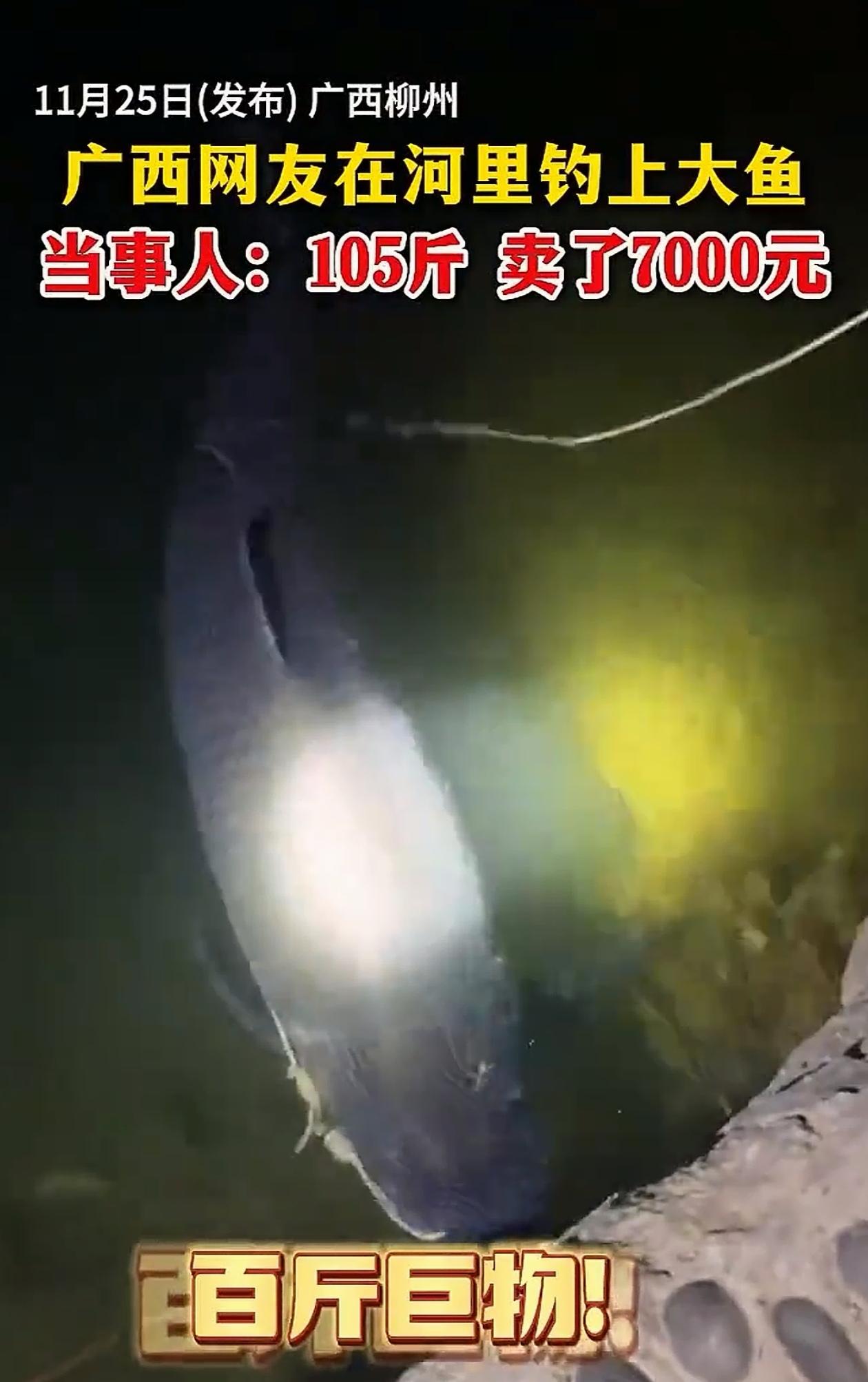 能吹一辈子!广西柳州,男子夜钓,竟然钓上来一条大鱼,足足有105斤,光是卖钱就卖了差不多7000,这跟天上掉馅饼有什么区别?网友:“这鱼应该不是用来吃的吧,肉质太差了!” 当时刚钓到男子就感觉这应该是个大家伙,等他用力把鱼拖到岸边后,赶紧迫不及待地打开了手电筒,想要一睹真容。 可这一看,却把男子自己震惊到了!因为这条大青鱼实在是太大了,光是看他在岸边扭动的身躯,就给人一种无形的压迫感。 最后男子废了九牛二虎之力,终于把鱼弄上了岸,卖了不少钱。不夸张的说,这一条鱼的收入都抵得上别人钓好几个月了! 有网友说,广西这地方生态环境是真的好啊,总是能看见一些体型特别大的动物,像什么39米的🐍和42斤的🐸…[捂脸] 也有网友说,这个明显卖亏了啊,有一个人钓的鱼才90多斤,都卖了2万,这个一百多斤连一万都没卖到! 其实能卖出去7000已经很不错了,这么一大笔钱拿来做什么都行,抵得上一两个月的工资,还能让全家吃一顿好的,也算的上是意外收入。 不过相比起钱而言,可能最主要的是那种和“大鱼”搏斗的快乐。能把这么大的鱼钓上来,男子肯定费了不少功夫,这种努力后有所收获的成就感,才是男子高兴的根源吧! 你觉得这鱼卖亏了吗?