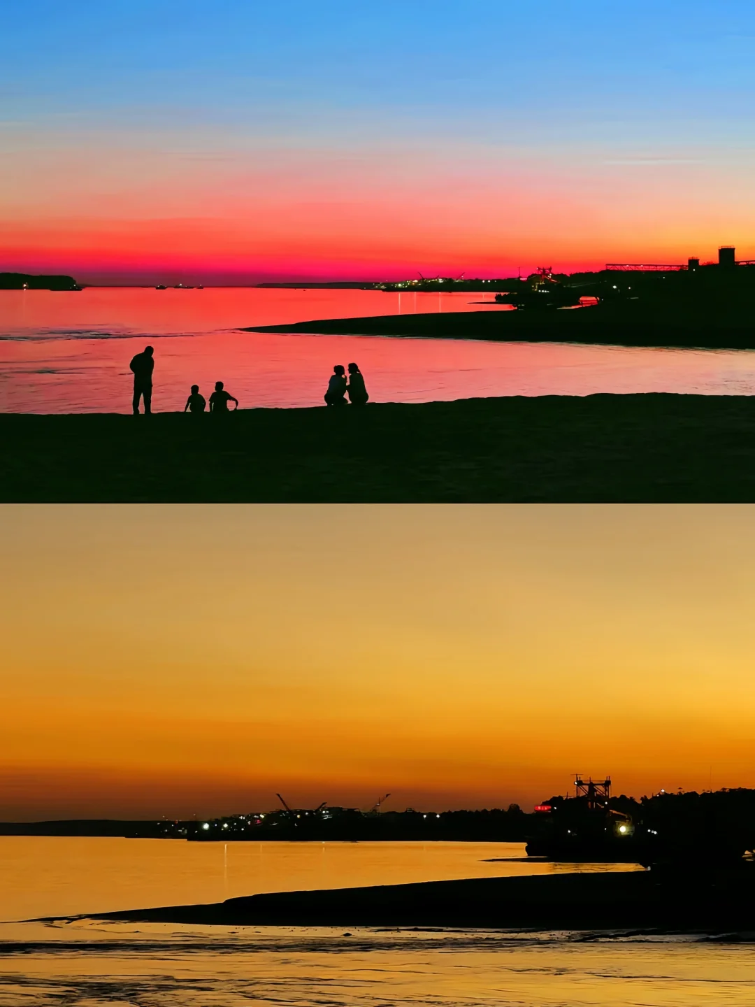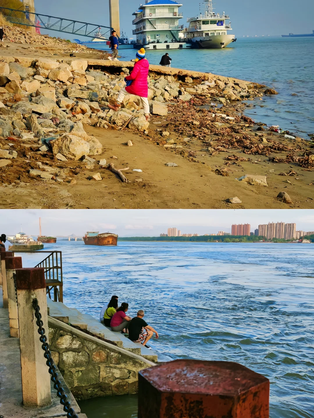 👉大南门码头:遇到好天气,看看江边的橘色天空,看江水拍打白色的沙滩,轮渡嗡嗡鸣响,很惬意