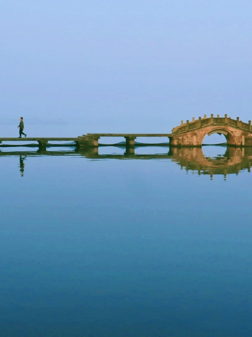 👉柳浪闻莺:湖面如明镜,古树倒映其中,成双的鸳鸯玩水嬉戏,一定要去很少人发现的横河桥,穿汉服去拍照巨美