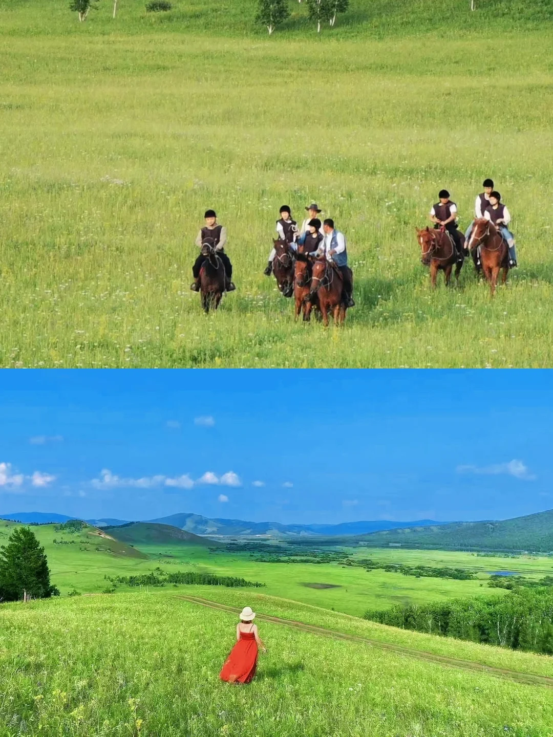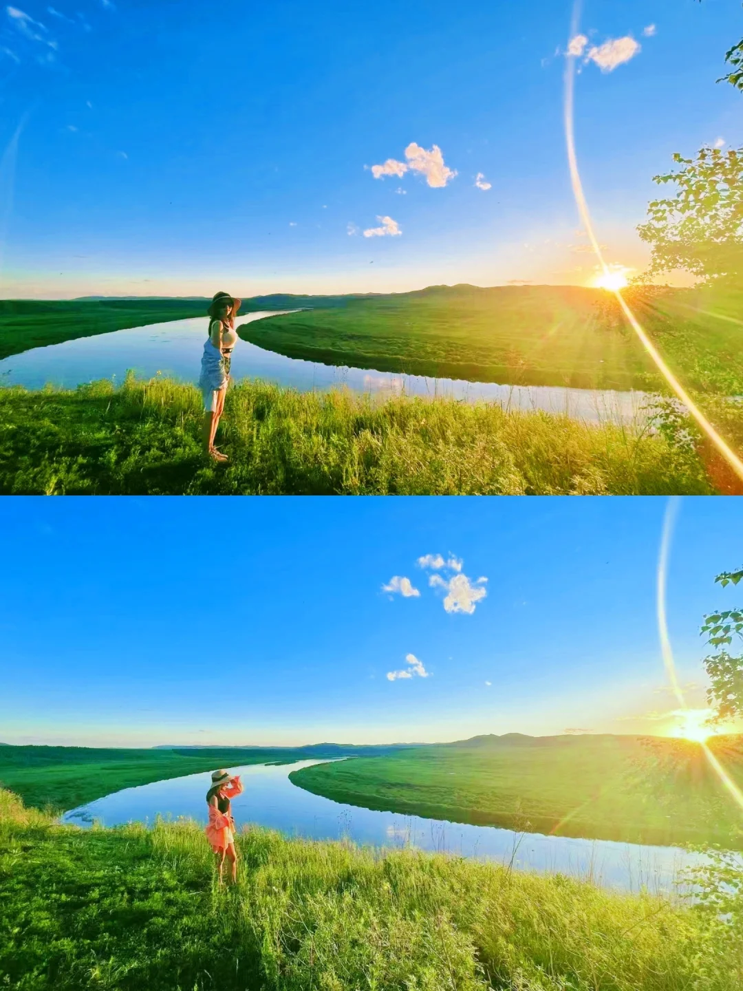 接下来的内蒙古堪称国内旅游的天花板 一望无际的大草原,成群的牛羊 每一帧都是美的体验~ 五天四夜攻略🗺️ ✔Day1🌞 海拉尔——>呼伦贝尔大草原——>莫日格勒河——>断崖——>九一穿越六队——>草帽山 🎈呼伦贝尔大草原:一望无际的绿色大草原,蓝天白云☁️牛羊成群,好惬意~ 🎈莫日格勒河:以曲折回肠闻名,高空俯瞰,在阳光照射下,像一条彩色的丝带 ✔Day2🌞🌞 额尔古纳——>白桦林——>驯鹿园——>神仙坡——>室韦 🎈额尔古纳:俄罗斯🇷🇺风格的很多建筑,拍照📸绝绝子,俄罗斯人都感觉惊叹 🎈白桦林:漫步白桦林,一半洒落荫凉,一半沐浴阳光,风吹过沙沙作响,此刻的宁静独属于你 ✔Day3🌞🌞🌞 口岸——>边防公路——>太极图——>骑马——>卡丁车——>日落——>篝火晚会 🎈太极图:站在乌兰山上俯看,一张神似太极八卦的神秘自然画卷悄然铺展在你的脚下,夏季草木风貌,郁郁葱葱,秋季斑斓绚丽,美的不可方物 ✔Day4🌞🌞🌞🌞 黑山头——>牧民家做客——>186网红滑草——>巴尔虎马之舞——>夜游满洲里 🎈黑山头:黑山头的日落是我zui难以忘记的,阳光撒在金黄不绿的草地和蜿蜒曲折的额尔古纳河上,月色悄悄爬上青粉相间的天空,美得窒息 ✔Day5🌞🌞🌞🌞🌞 满洲里——>套娃广场——>国门景区——>呼伦湖景区 🎈满洲里:满满的俄罗斯🇷🇺风格的小城,套娃建筑随处可见,七彩的童话浪漫,仿佛置身奇幻的童话世界 🎈国门景区:雄伟的中俄国门是中国最大的边境国门,一旁有北疆明珠观光塔,可以一览异国风光. 🍜美食攻略 ✔布里亚特包子 ✔烤包子 ✔内蒙古奶茶 ✔手把肉 ✔烤羊腿 ✔大列巴 ✔奶渣饼 ✔白切牛蹄 ㊗️:内蒙古旅游,路线景点较多,距离较长,省钱的话推荐报团游,对女孩子👧🏻来说更加安全,少操心。包车自由行,不受拘束 内蒙真的太美了,去了一下下次还想去😭 大口吃肉真的不要太快乐 落日,长河,草原,蓝天 不要太幸福