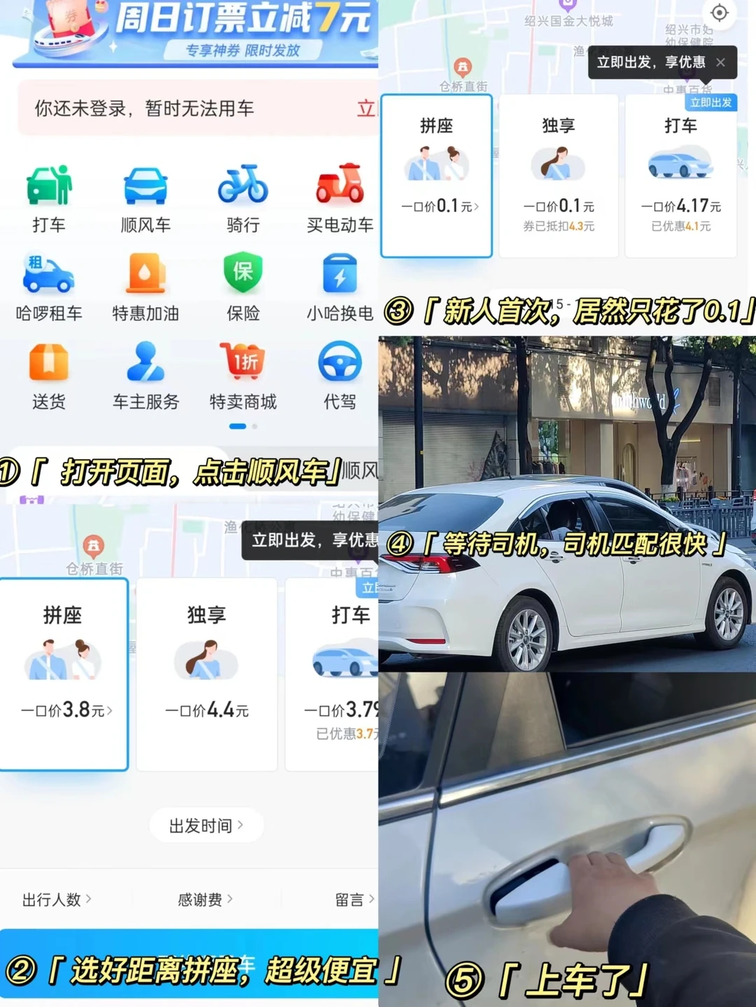 ㊗️:我出行除了共享单车就是哈啰顺风车,新用户我第一次只花费0.1就坐上顺风车回到酒店🏨,上面很多优惠,现在春季出行哈游卡八折优惠领取即可,安全可靠,便宜还方便.