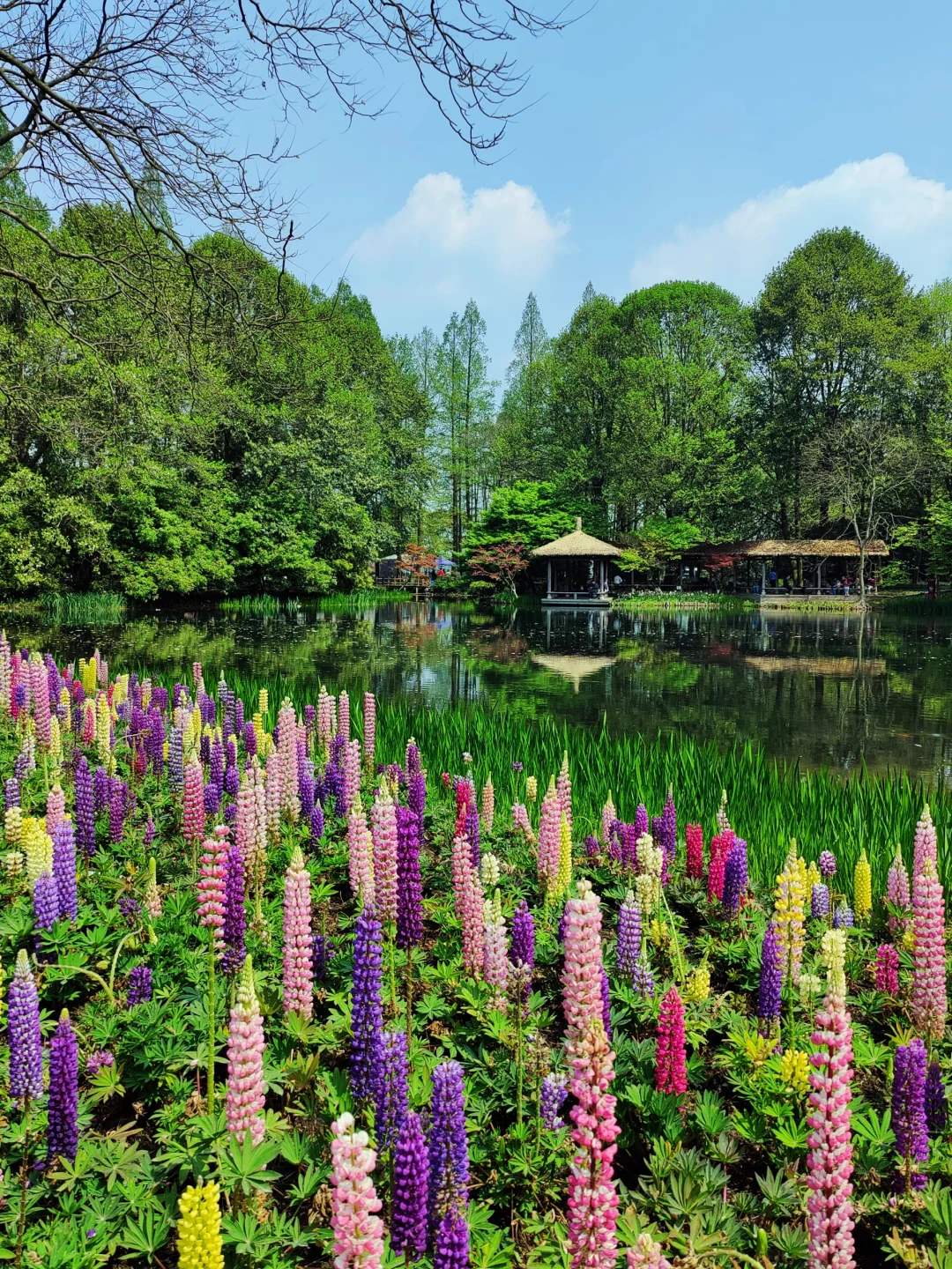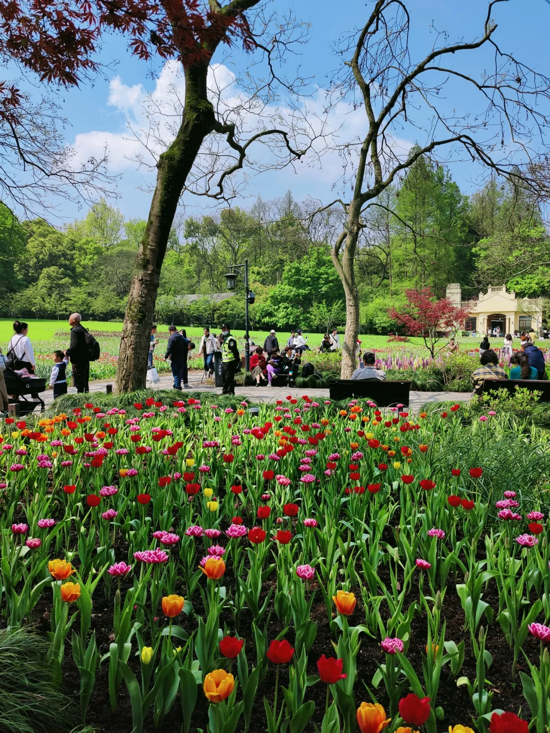 🎈太子湾公园:第一眼看见的说潺潺溪水汇入西湖,初入太子湾,真的是童话世界,自带滤镜,咋样都好拍,虽然郁金香落了很多,但是还有其他的花仍在开放,真的绝,里面还有拍照打卡点📷