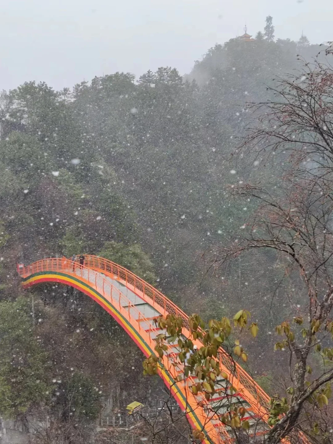 🎈天燕(游玩2.5h):5A级景区,负离子含量超高!进山之后的空气真的超级好,彩虹桥耸立两山间,超适合拍照的,浪漫值拉满,还幸运的看到了3月的雪