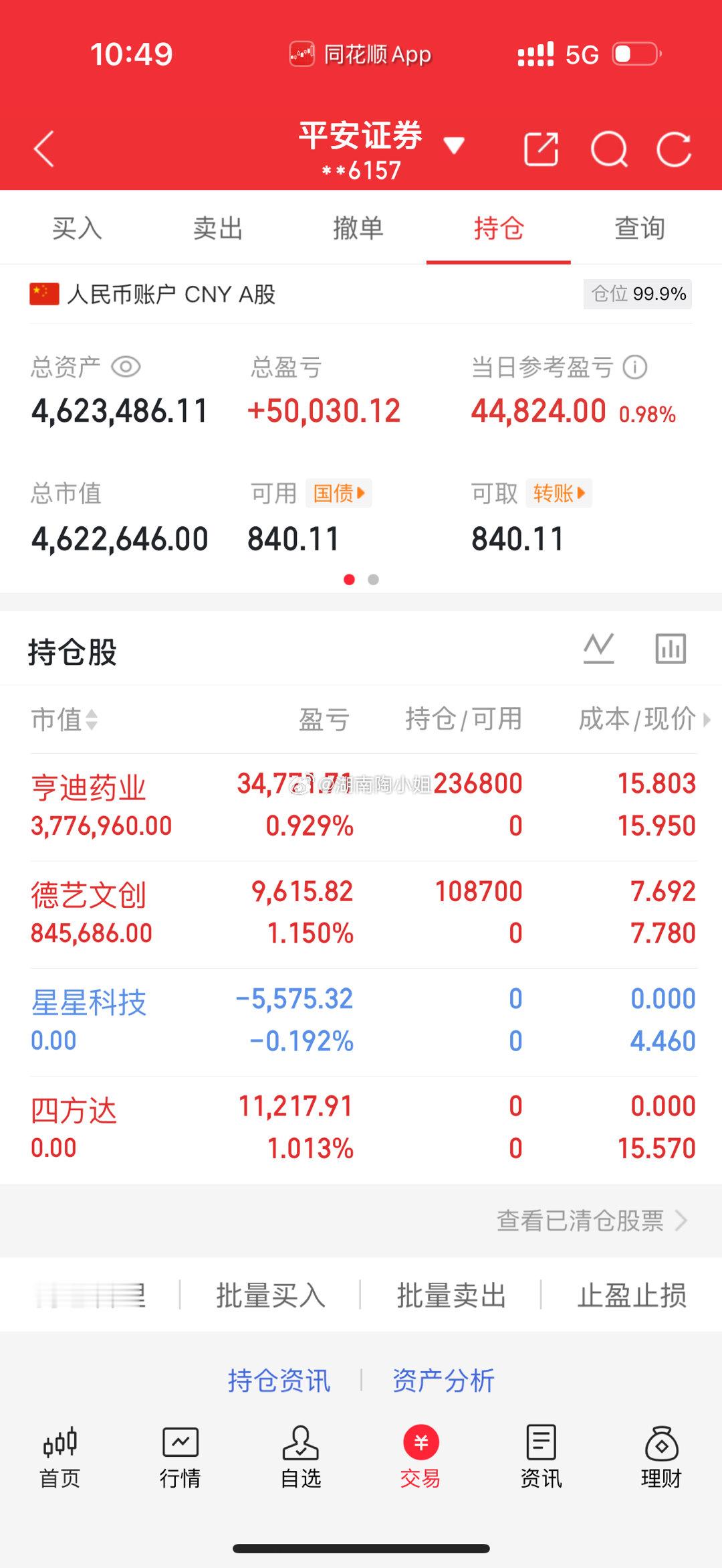今日卖出:星星科技,四方达今日买入:亨迪药业、德艺文创我将记录每一天的操作,用行动见证!希望各位股友支持,点赞富一生,评论168特别声明:本内容为个人实盘记录,不构成投资建议,更不鼓励跟买!股市有风险,投资请理性 !