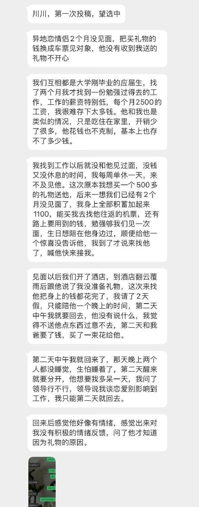 说到爱情里的付出,最近真的被一个故事触动了心。姑娘为了给异地的男朋友过生日,攒了好久的钱,买了火车票还买了点小礼物,来回折腾,行李里全是她的小心思。整个人满脑子都是怎么见到男朋友,能不能多陪路上困了都舍不得在中途休息站多停一会。刚下火车,连气都来不及喘,直奔男朋友的住处。全程兴奋又紧张,这种心情,谁没经历过呢?但其实她心里也清楚,这一趟不容易,钱花得差不多,甚至连下个月的生活都得节省点过。 男朋友见她来了,第一时间没问路上累不累,也没好奇姑娘为啥这么拼。眼神扫过来就盯着她的礼物和车票,顺嘴说比起路费,还不如直接买个贵点的礼物送他,见一晚又得回去,实在亏得慌。说白了就是在盘算成本了,这句话把姑娘整个人弄傻了。你说现实点没错,可对面这么大老远赶来的,比买礼物不重要?他还一直跟姑娘分析:“你花了这么多时间和钱,最后就见我一晚,根本不值。”他是算得明白,可这账真的该这么算吗? 姑娘那一刻是真的愣住了。满心期待变成尴尬无措,甚至怀疑自己是不是做错了什么。本来以为这次能给对方一个惊喜,结果被一句“性价比不高”打回原形。这样算计的态度确实让人难受,毕竟姑娘不是奔着钱来的,也不是比谁花得多,她只是想在男朋友生日的时候能陪伴一下。强烈的落差感油然而生,这种情绪估计谁碰上了都要心塞。 其实现在的很多爱情,总是被“性价比”绑架得太厉害了。有些人对感情的衡量越来越像买东西,动不动就是划不划算、值不值钱,仿佛所有付出都变成价格标签。你说,姑娘这次的努力和勇气,要是换算成金钱,那还叫爱情吗?异地恋本身就够考验人的,有的人坚持到了最后靠的就是这种舍得拼的真心。对方不懂得珍惜,反倒拿成本去掂量,其实挺让人无语。 差距最大的就是“真心”和“计算”。有人把见面当成礼物、当成最重要的陪伴,有人却只问今天花了多少钱、下次还能不能更划算。这样的感情,姑娘的付出其实比什么礼物都贵重,路上的辛苦、攒钱的压力、急切见面,全部都是她的心意。男朋友如果只想着钱,那两个人之间的温度恐怕早就冷了不少。感情不是理财,也不是做买卖,更不是算计谁多谁少。 过生日这种事,说白了是温暖和陪伴,不是拿来比较礼物价钱的机会。姑娘一个人辗转千里求的是那一瞬见面的幸福。或许现在有很多人觉得,恋爱也是要讲性价比,不能只靠感动,可实际上最打动人的往往就是这些不计成本的真心。谁都知道赚钱不容易,可爱情如果只剩下价格和标准,那真的太单薄了。 后来姑娘只能默默地把礼物拿出来,嘴角勉强挤出个笑,心里却想着是不是以后再也不要这么拼了。她不是没想过男朋友会不领情,但这种失落感过去很久才会慢慢消散。这种时候谁都希望对方能说一句:“辛苦了,谢谢你。”不过有些人就是只看得见数字,完全感受不到背后那些不眠不休的付出。 现在网上也有不少人讨论这个故事,有人说男朋友太死板,也有人觉得这样算钱没啥问题,各有观点。但真心话就是,距离会让人心更近,也可能让人越走越远。一场异地相见,姑娘什么都没留,她带走的可能只有成长和对爱的再认识。她明白了,不是每个人都会理解你的付出,也不是所有人都懂得什么算“无价”。 其实每段感情里都有人在用尽力气去靠近,也有人习惯用冷静和账本去衡量。到底哪种才更有价值,这一趟姑娘已经有了答案。她选择了付出,结果虽然不完美,但至少她没有亏待自己的心。爱情有时候真的是一次自我验证,别人不珍惜也没关系,自己努力过就够了。说不定下次,她会收获更有温度、更能懂得她的人。付出不是赔本买卖,真心才是最贵的东西。