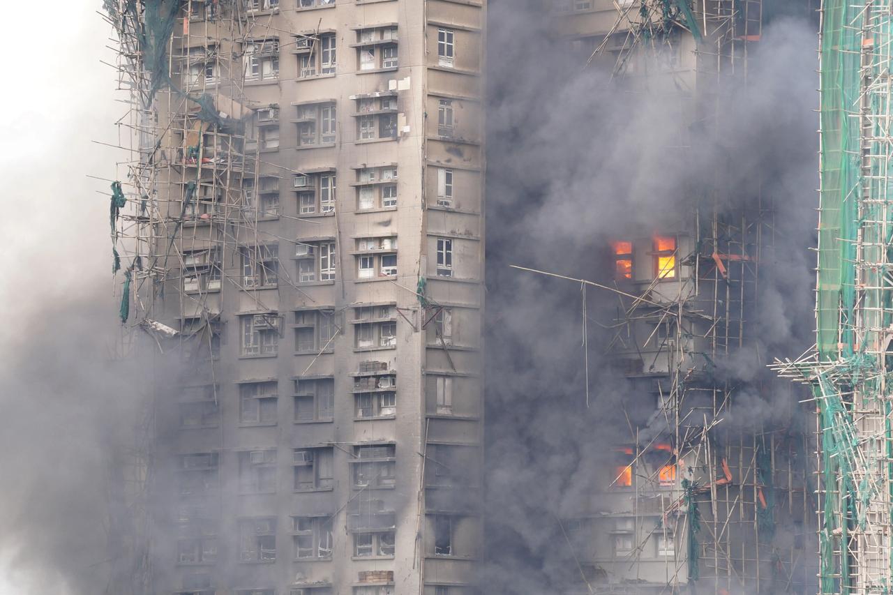 经消防队彻夜灭火,少数楼层房间内部有火焰跳动,现场高楼浓烟减退,火势基本得到控制! 着火楼群是居民楼,竹棚架是为了外围维修,刚开始都以为是未住人的施工楼。 8栋楼全部烧完,几千人无家可归,不敢想当时被困者等待救援的时候有多么绝望! 这种级别的大火根本不是现在人力可以扑灭的,只能在出事前尽量预防,竹脚手架,全年最干季节,超近的楼间距…每条规范后面都是血泪的教训! 浓烟笼罩的屋邨里,是无数破碎的家庭。37岁消防员何伟豪殉职在救援途中,700余人暂居庇护中心,市民自发当义工运送物资——火灾无情,人间有爱。 此刻唯有祈愿:逝者安息,伤者康复,失联者能早日与家人团聚!