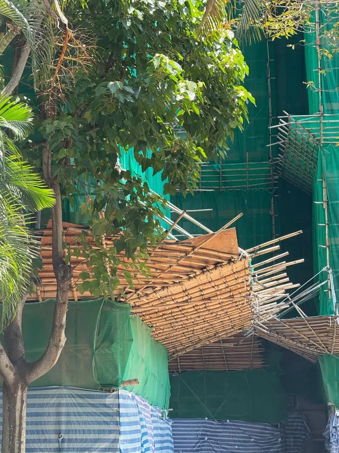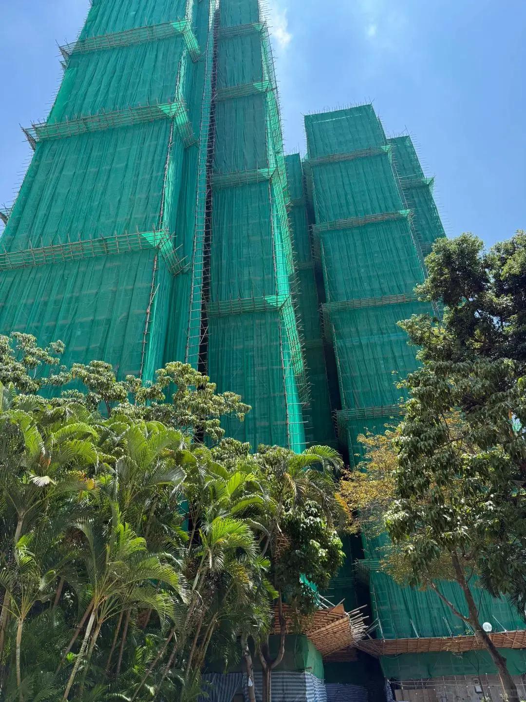 所以是因为工人在竹棚架里抽烟才导致的火灾吗?宏福苑业主还曾经因为这个向维修方举报过。 不管真实原因是不是这个,在这种环境下抽烟真的很危险。 竹制脚手架加防护网,妥妥都是易燃品,几栋大楼外围全都是这些东西,密密麻麻,严严实实,看着都让人感到压抑。 所以从棚架起火到蔓延到大楼,整个过程不到10分钟,火还越烧越大,难以想象困在里面的业主是何等的绝望,尤其是住在低层的业主,可能连逃生的时间都没有。