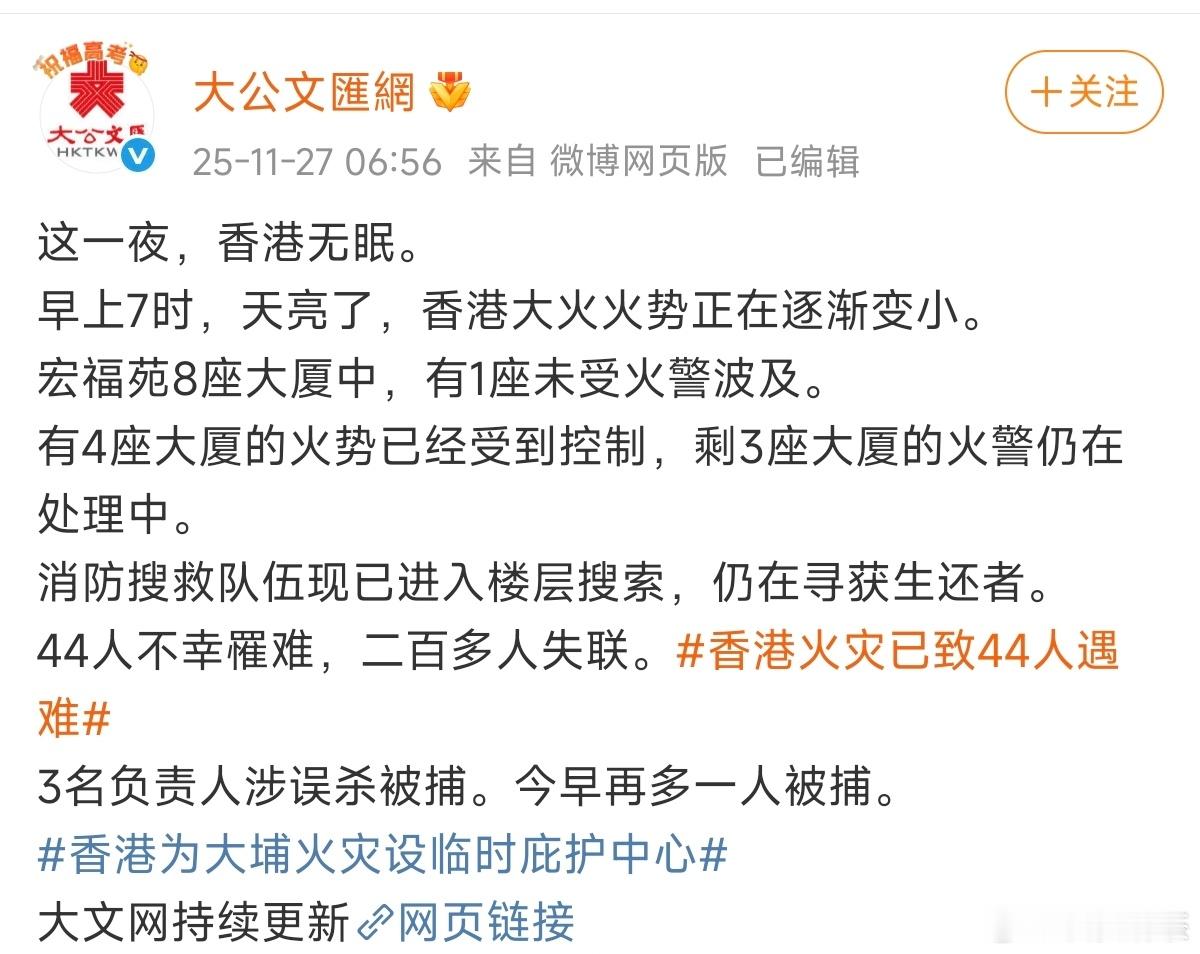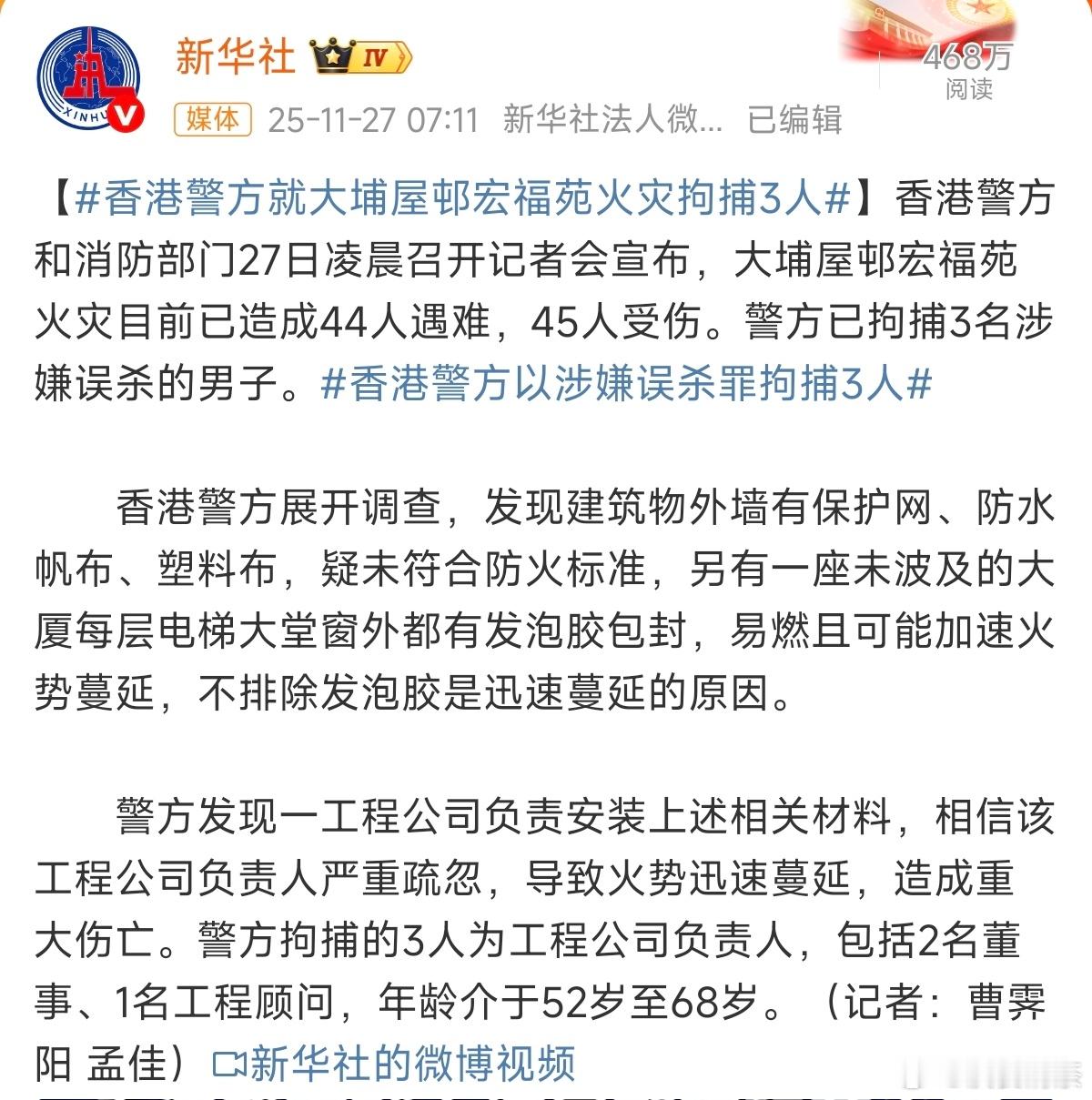 83年老小区进行外墙维修,一共8栋楼,起火7栋楼,每栋31层,每层8户,1700+户家庭香港火灾已致44人遇难